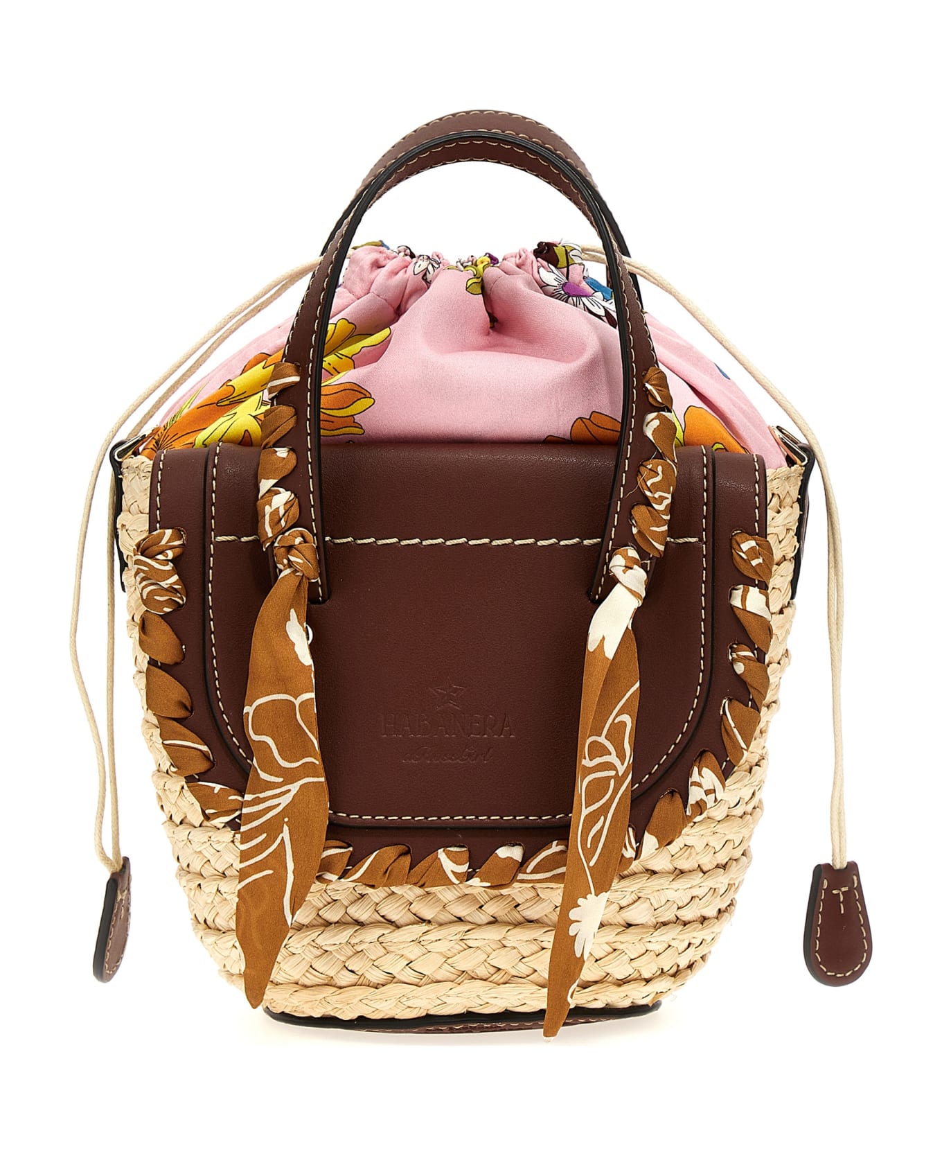 Cuba Lab x SanPa 'Habanera Baby' raffia and leather handbag with double leather handle, adjustable and removable shoulder strap, leather details, Mantero 1902 silk lining, floral print.