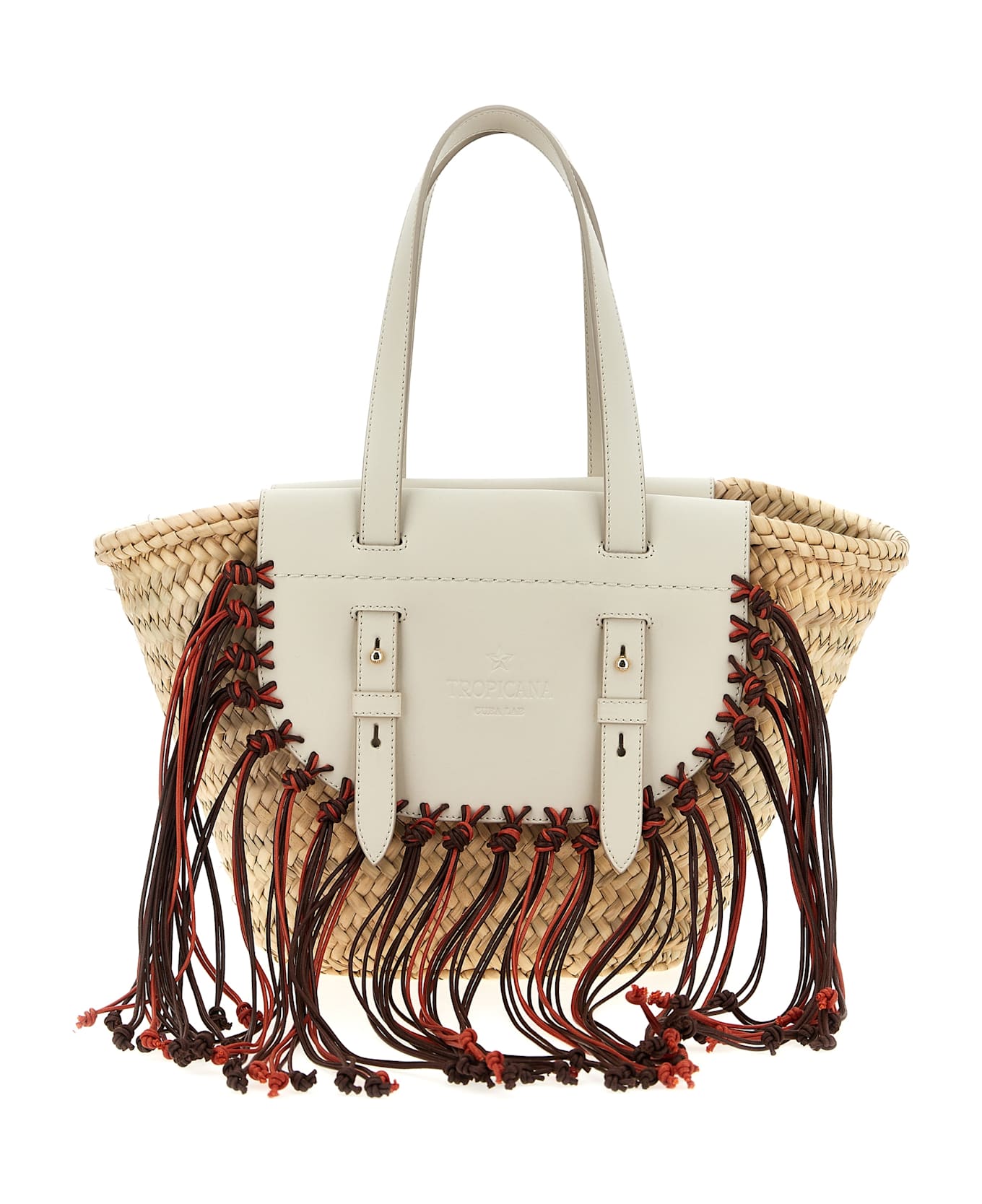 Cuba Lab x SanPa 'Tropicana' shopping bag in straw and leather with fringes, double adjustable handle, removable matching inner clutch. Handcrafted product, any imperfections are to be considered characteristics of uniqueness.