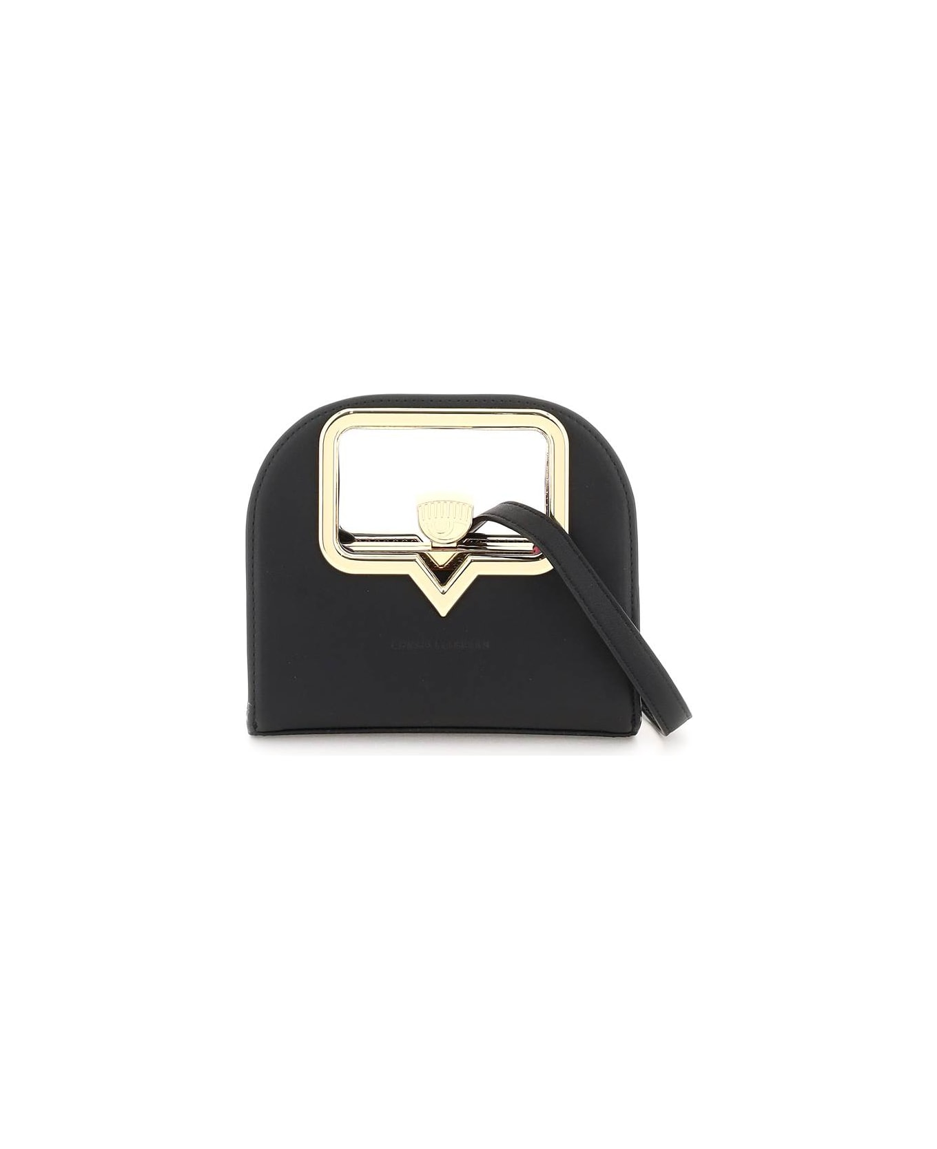 Chiara Ferragni handbag made of faux leather and featuring a gold metal cut-out handle with iconic Eyelike shape. Snap closure, microfiber interior and detachable chain shoulder strap with leather insert. Gold-finished metalware. Composition: 100% PL
