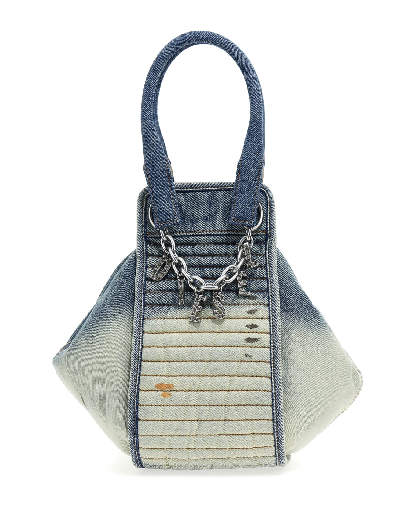 'D-Vina-S' solarized denim handbag, zip closure, double handle, chain with logo charms, removable shoulder strap. Composition: