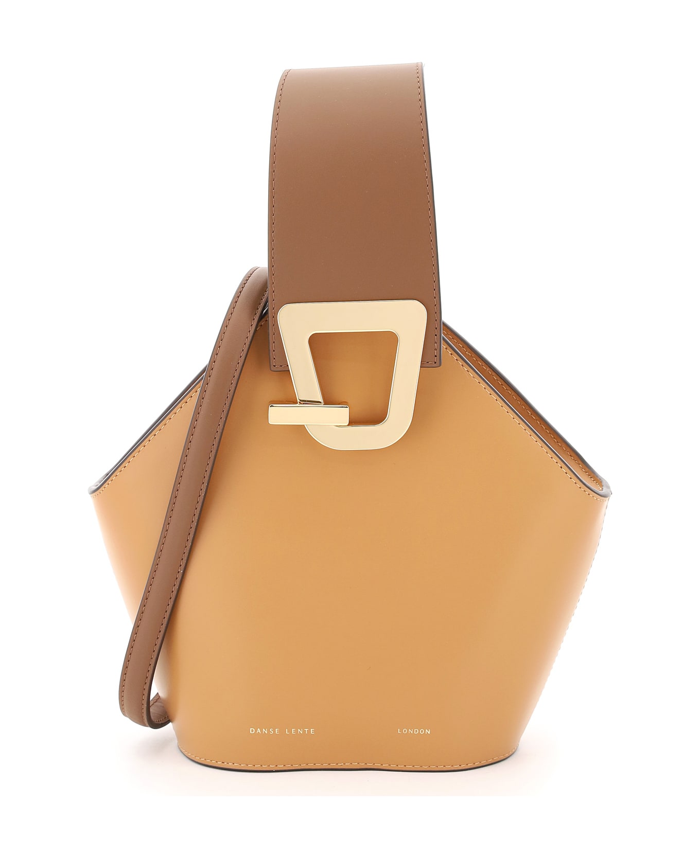 Johnny mini leather bag by Danse Lente, featuring a removable contrasting handle on the back with maxi branded metal detail on the front. Adjustable shoulder strap, gold-tone logo print, magnetic button bridge closure, canvas-lined interior with a zip pocket. Gold-tone metalware.