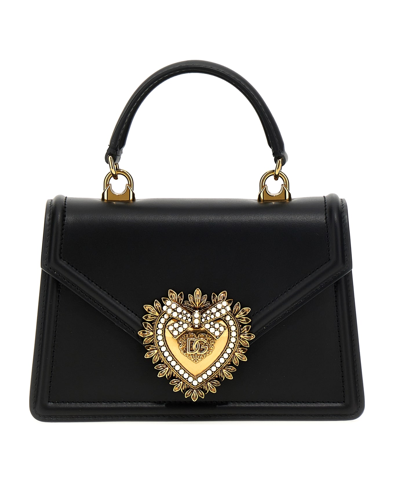 Dolce & Gabbana 'Devotion' small leather handbag with a flap closure, embellished with a 'Sacred Heart' and a removable chain shoulder strap. Composition: 100% calf leather (bos taurus)