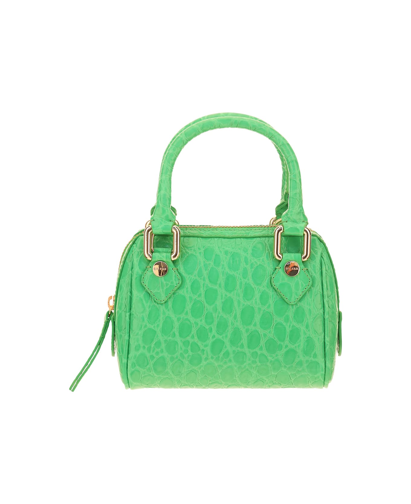Calfskin Dora Circular Bag by By Far, croco embossed leather, two upper rigid leather handles, zipper opening at top, removable and adjustable shoulder strap, flat pockets inside.