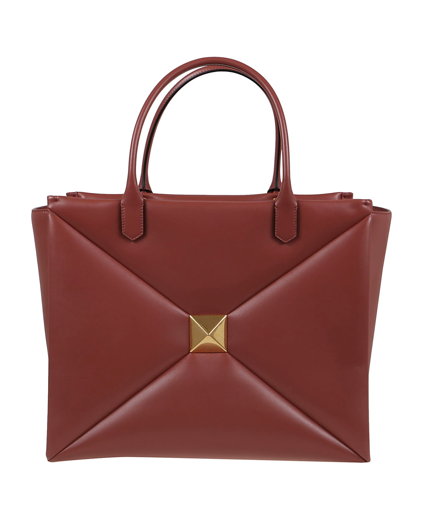 ONE STUD large handbag in black lamb nappa BY VALENTINO GARAVANI. One zip pocket and two flat pockets; zip closure; protective feet. Featuring a Maxi Stud on the front, in an antique brass color. Ideal to be worn for a comfortable, casual but trendy outfit!