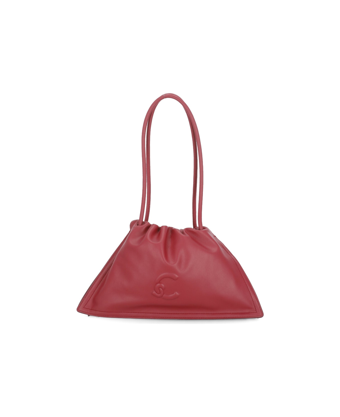 - Bordeaux Coccinelle leather shopping bag for woman - Two handles - Magnetic fastening with drawstrings - Front embossed logo - Rear golden logo - One internal pocket