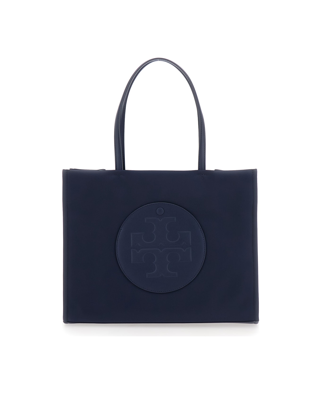 'ella' Blue Small Tote Bag With Two Top Handles And Embossed Maxi Logo On The Front In Fabric Woman