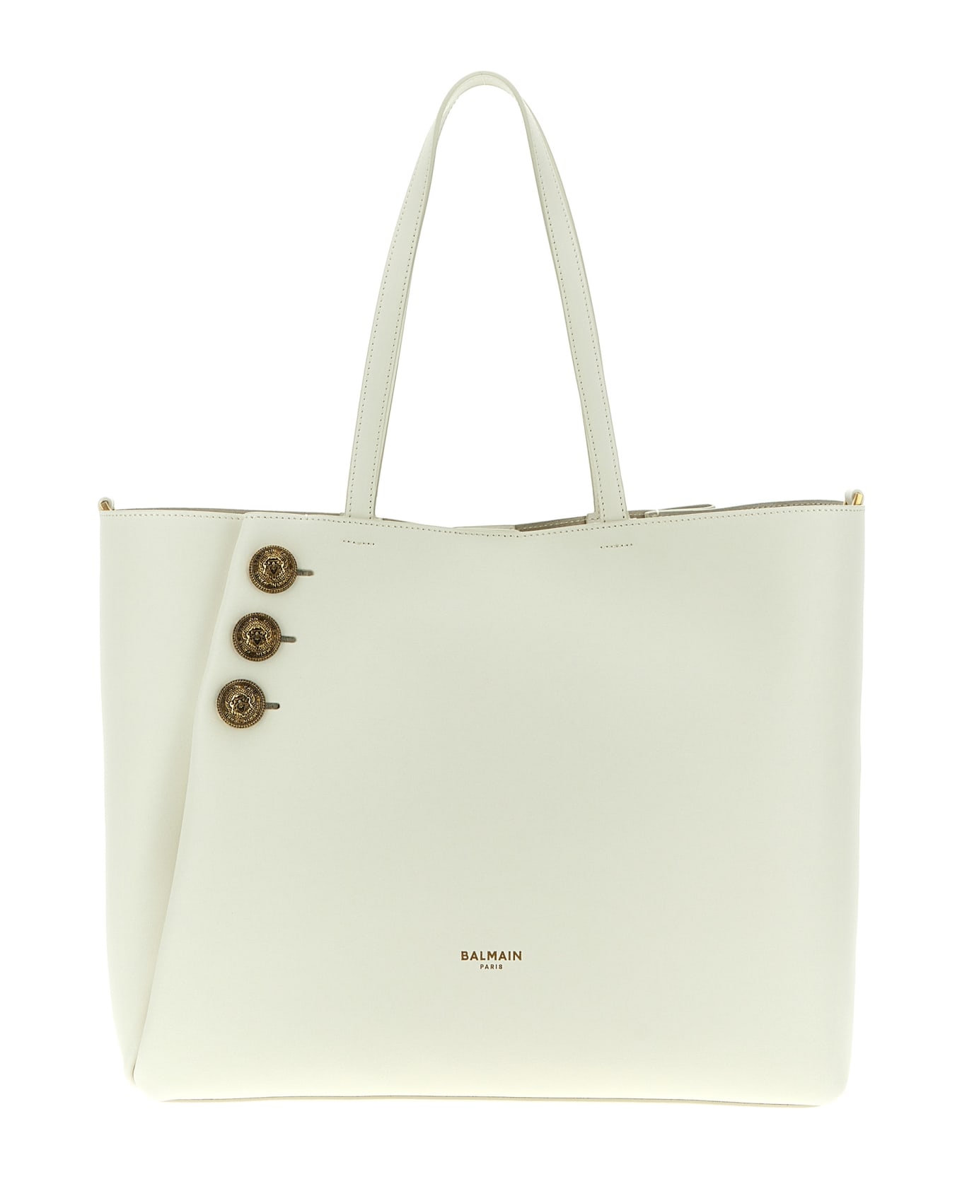 'Emblème' leather shopping bag, double handle, logo button detail, inner clutch bag, trompe-l'oeil fold closure, turn-up effect on the sides. Composition: 100% calfskin leather