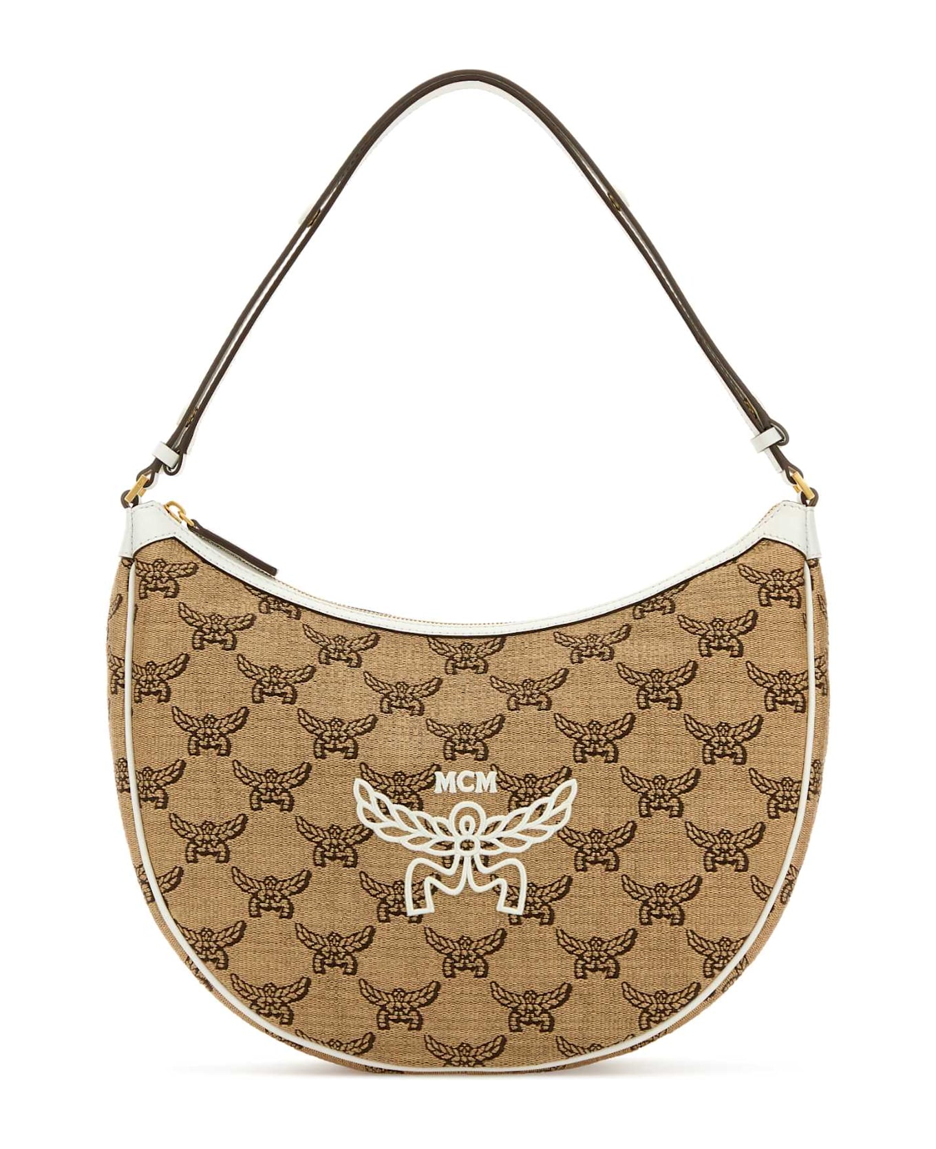 Embroidered Raffia Himmel Ascending Moon Shoulder Bag from MCM