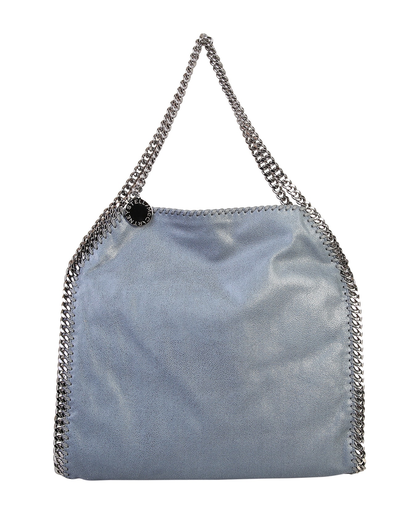 Falabella bag from Stella McCartney: Blue Falabella bag with button fastening and chain trim. W: 37 cm X H: 36 cm X D: 8 cm