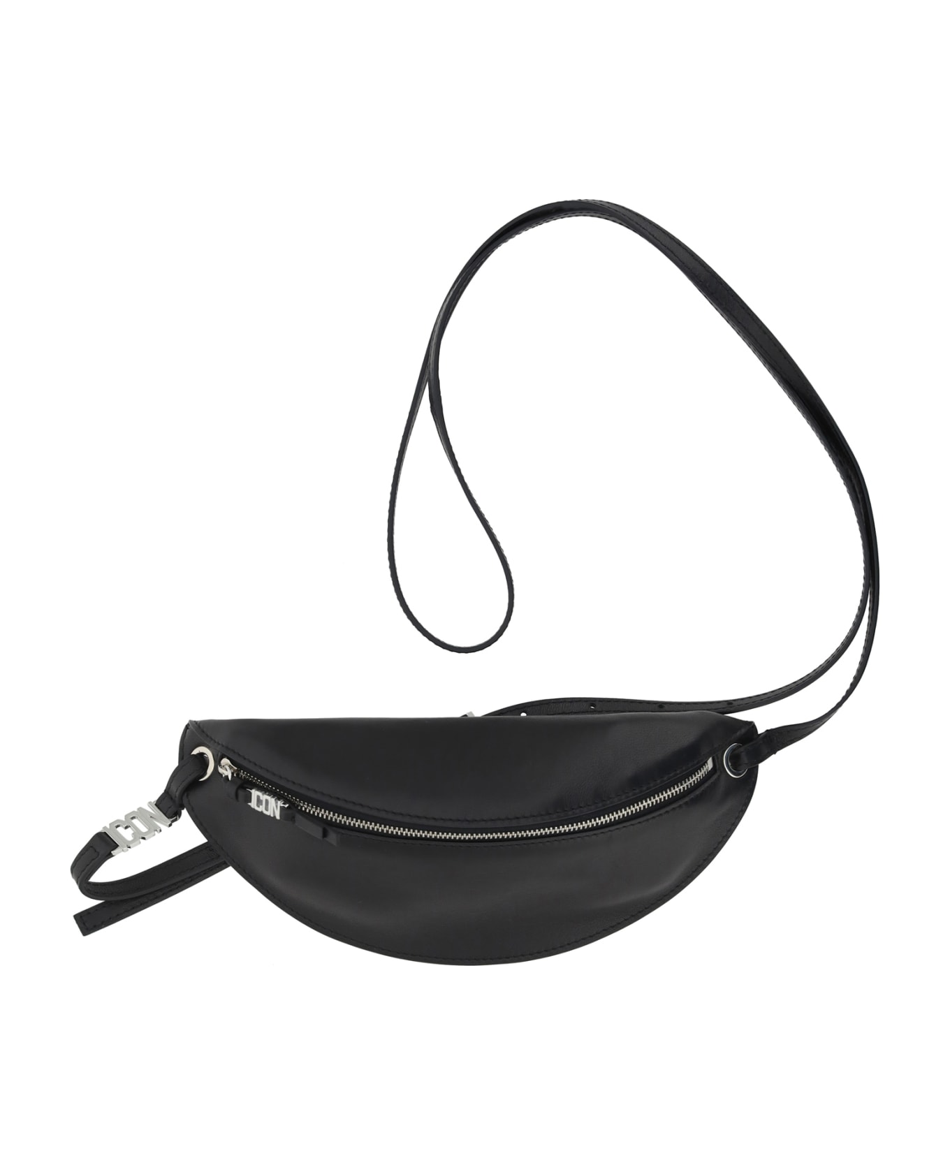Lambskin fanny pack by dsquared2, front zip fastening, an embossed iconic brand logo on the shoulder strap and slider, and an adjustable flat sliding shoulder strap.