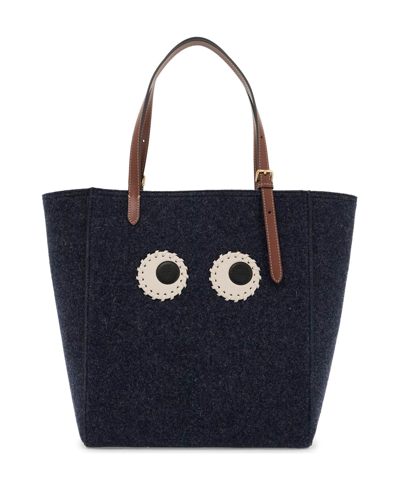 This Anya Hindmarch tote bag is made of felt and features the brand's iconic leather eyes. It has a double adjustable handle and an unlined interior with a leather open pocket.