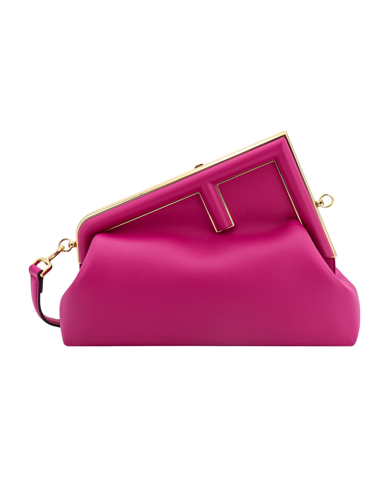 Leather clutch with macro F - Snap Closure - Removable Leather Shoulder Strap - Lining With Ff Motif - Made In Italy - Leather