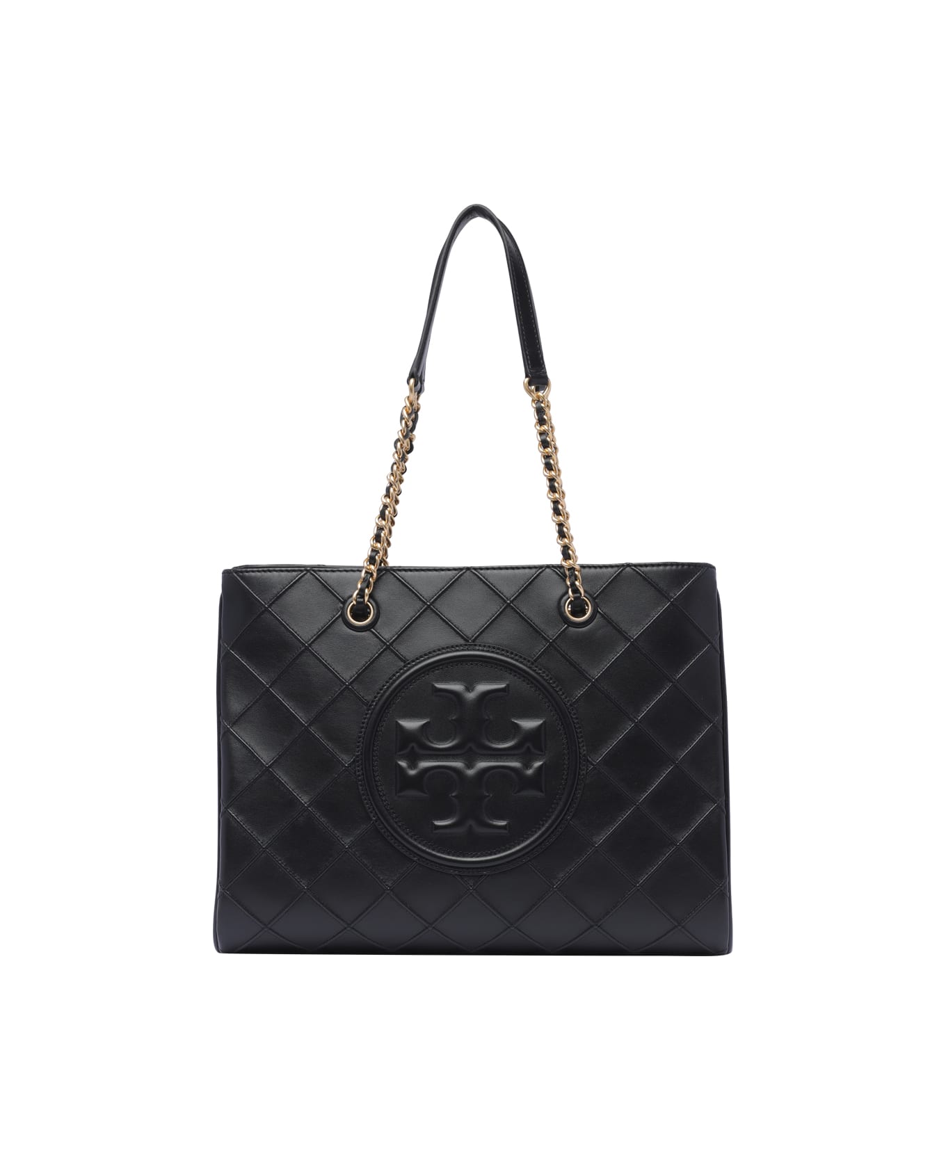 Tory Burch black Chain tote bag, magnetic closure, inner zip and open pocket, 2 shoulder straps, frontal tone on tone logo