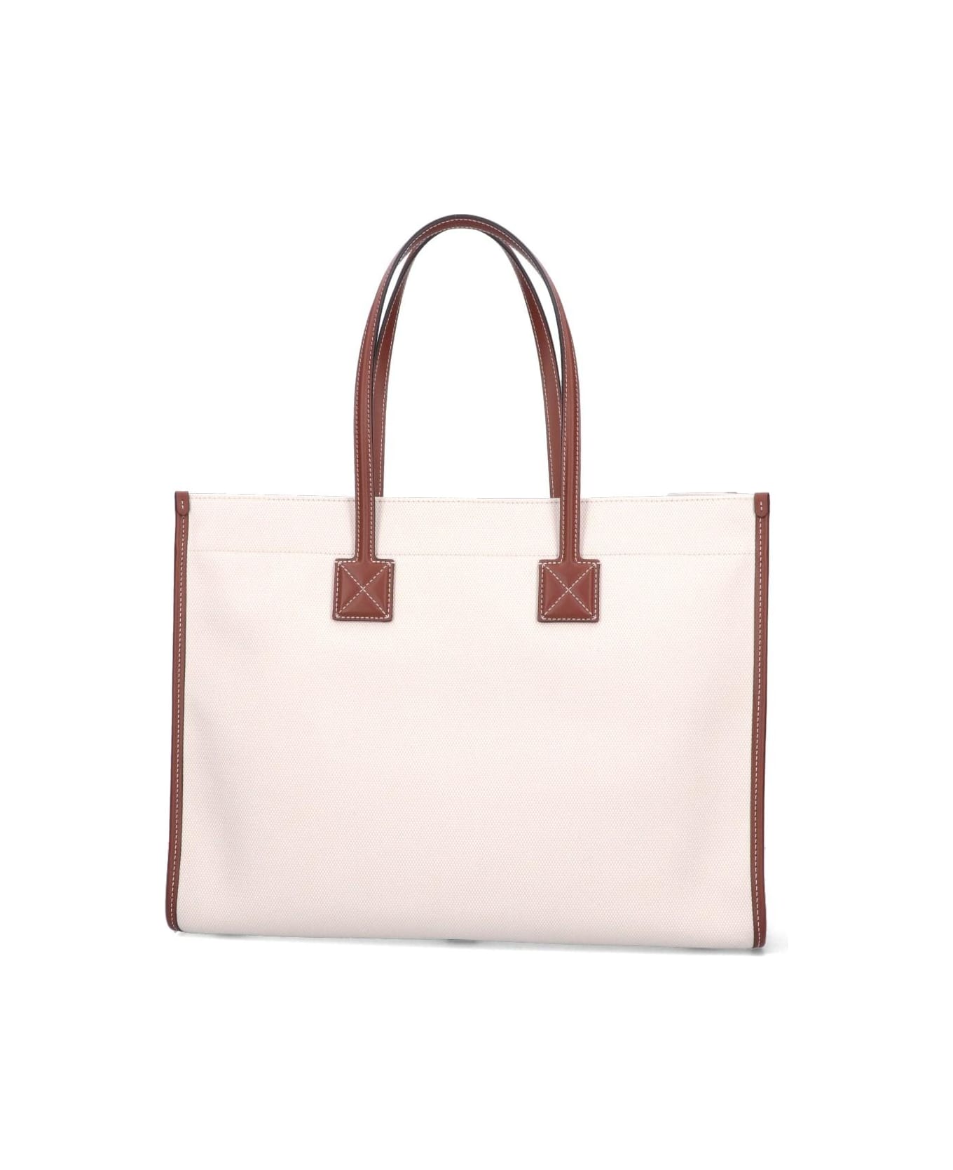 Burberry 'Freya' Medium Tote Bag, cotton, cream colour, brown leather details, two top handles, snap button closure, one front button closure pocket, front contrasting 'Horseferry' logo print, one inside. Autumn Winter 2022 2023, women's bags.