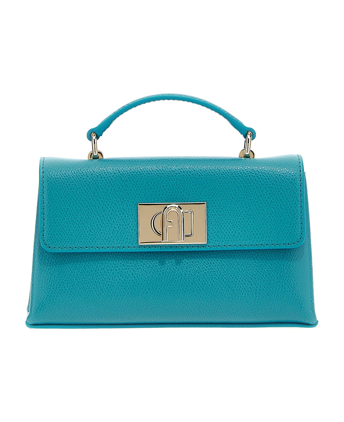 'Furla 1927' mini handbag in grained leather with top handle, removable chain shoulder strap, turn-around closure with logo engraving.