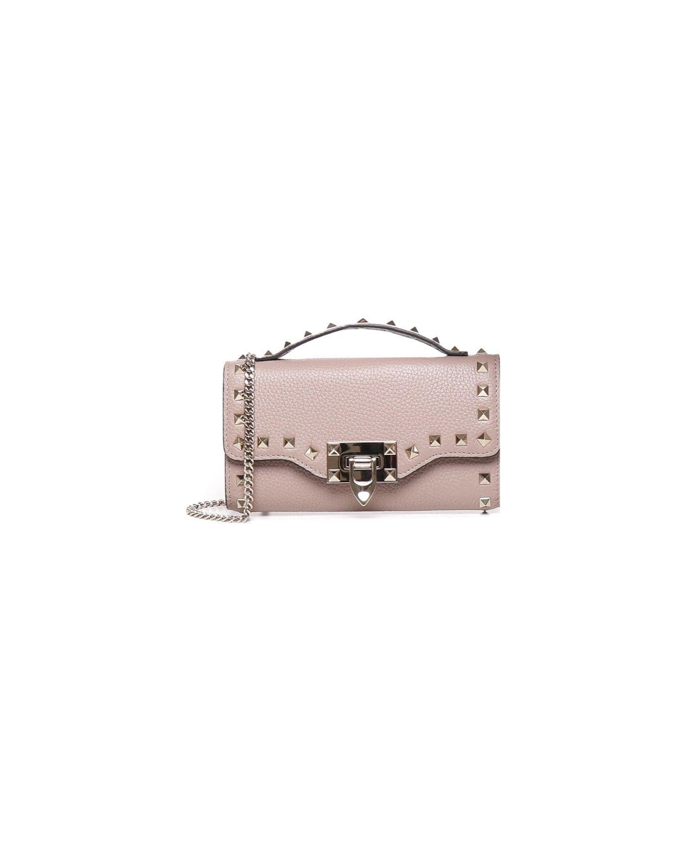 Poudre Garavani Rockstud Foldover Top Clutch Bag from Valentino Garavani Garavani Rockstud Foldover Top Clutch Bag from Valentino -100% Calfskin