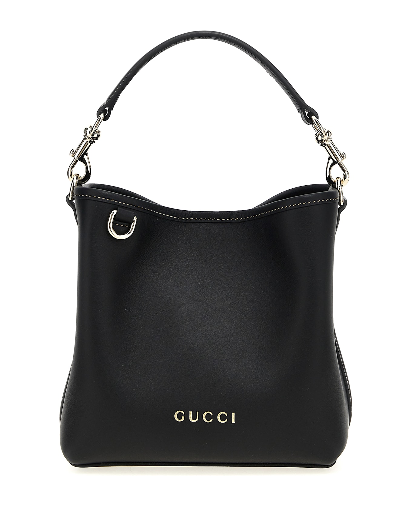 GG Emblem' mini bucket bag in leather with front embossed logo, magnetic closure, removable handle, and adjustable and removable shoulder strap. Composition: 100% calfskin leather (Bos Taurus)