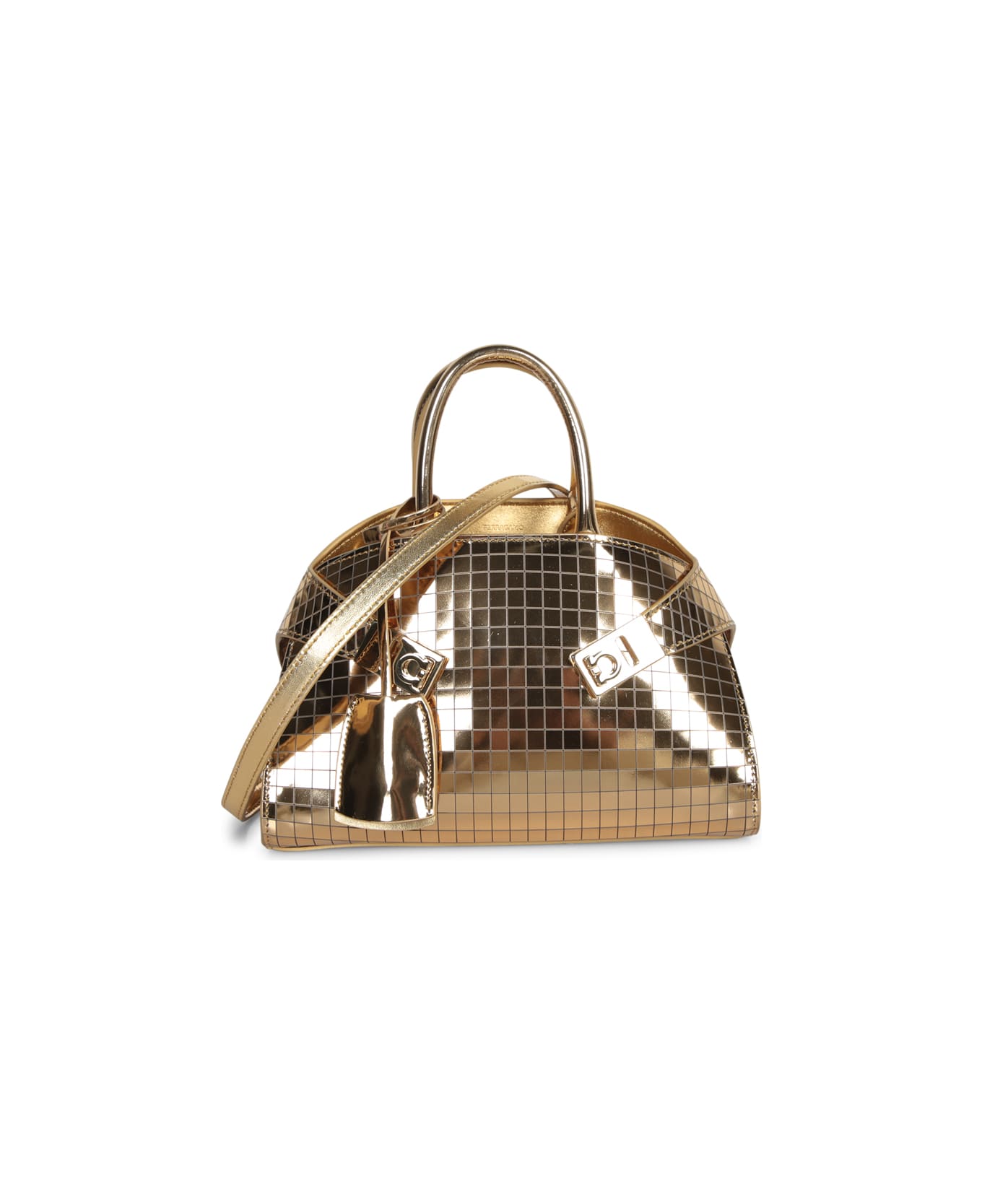 A miniature of elegance, this Ferragamo bag enhances any outfit with its rich gold tone and fine finishes. Perfect for evening occasions or as a luxury daytime accessory. Composition: 100% Calf Leather