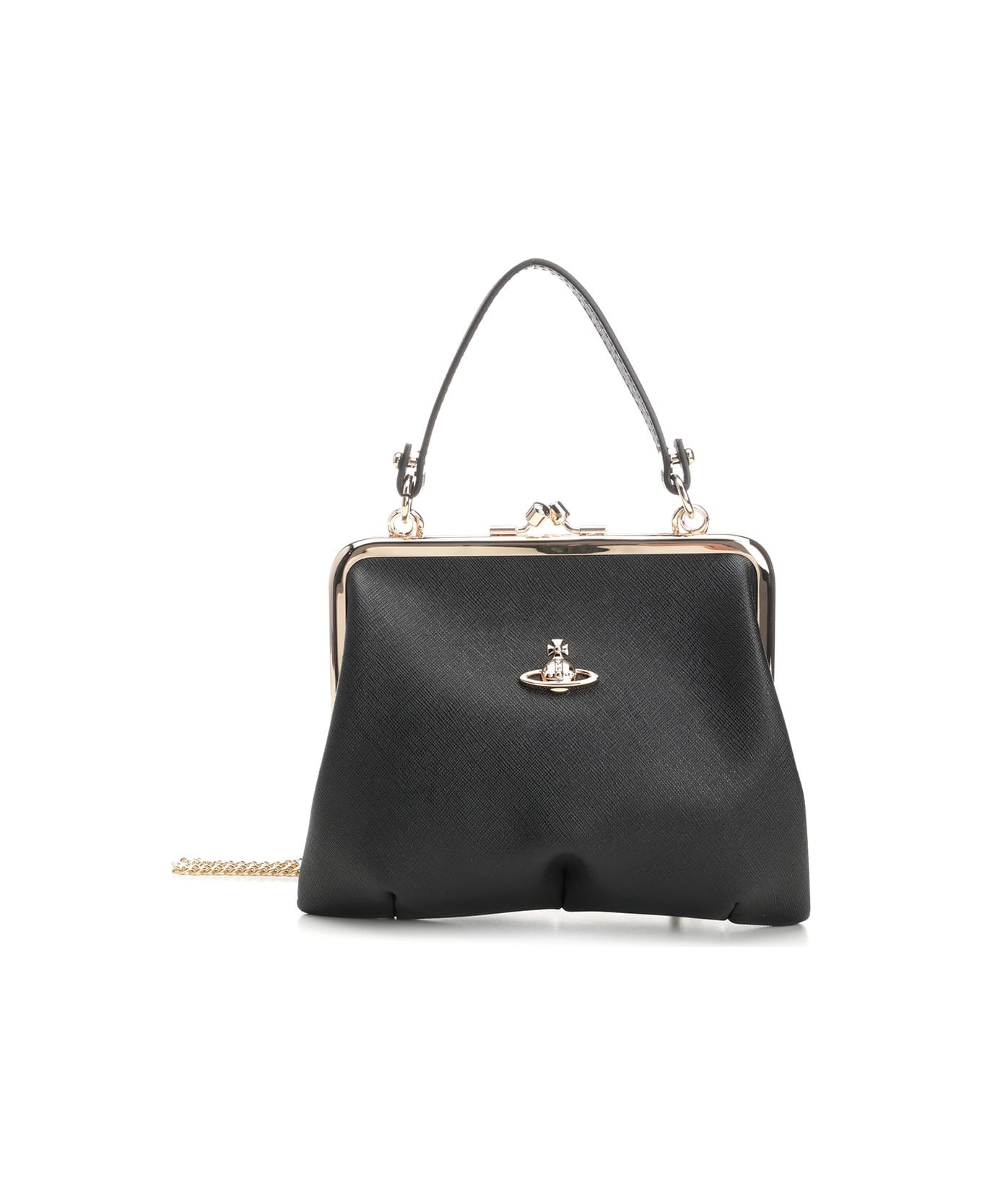 Interior zip pocket Metal details and Orb plaque Removable chain shoulder strap Buckle closure at the top Composition: 65% Polyurethane 35% Cotton