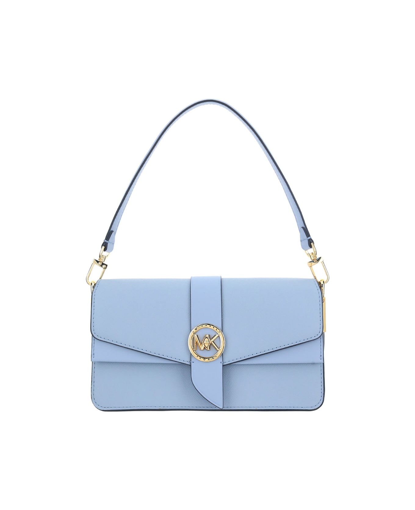 Greenwich Bag, with Michael Kors logo engraved, Slit pocket on the back, Flap closure and metal twist mechanism, Removable leather handle, Removable and adjustable shoulder strap in leather and metal mesh.