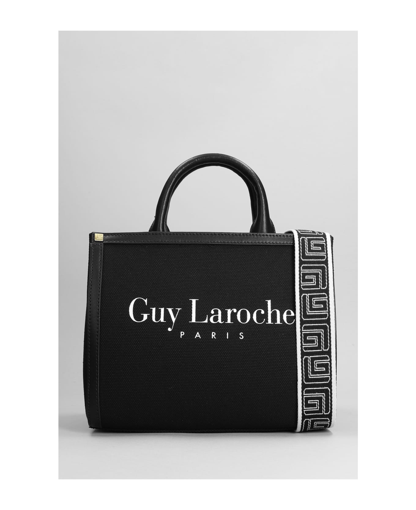 Hand bag in black canvas, double handle, detachable shoulder strap, logo print on front, leather detail, 100% canvas, Made in China, Height 225 mm, Width 270 mm