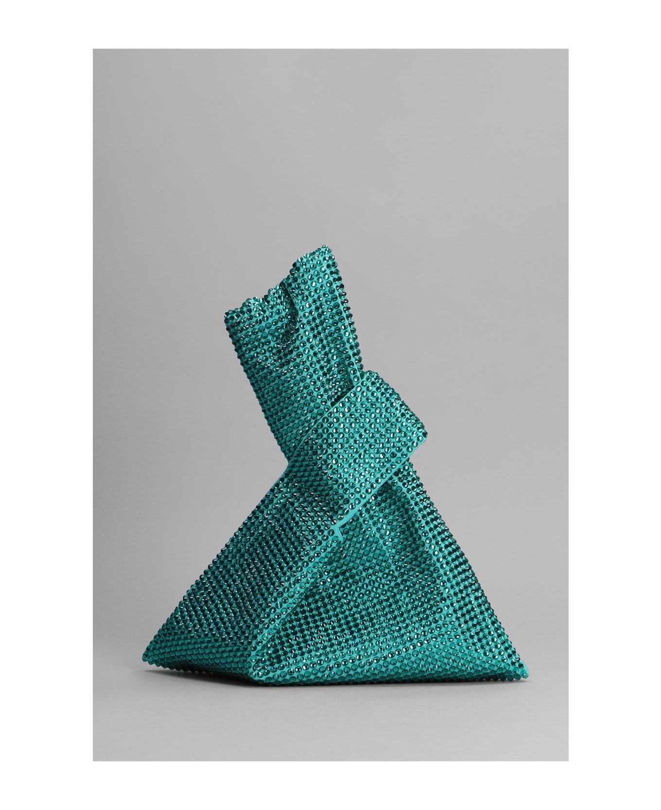 Hand bag in cyan viscose, double handle, crystals detail, knot detail, Made in Italy, Height 150 mm, Width 230 mm