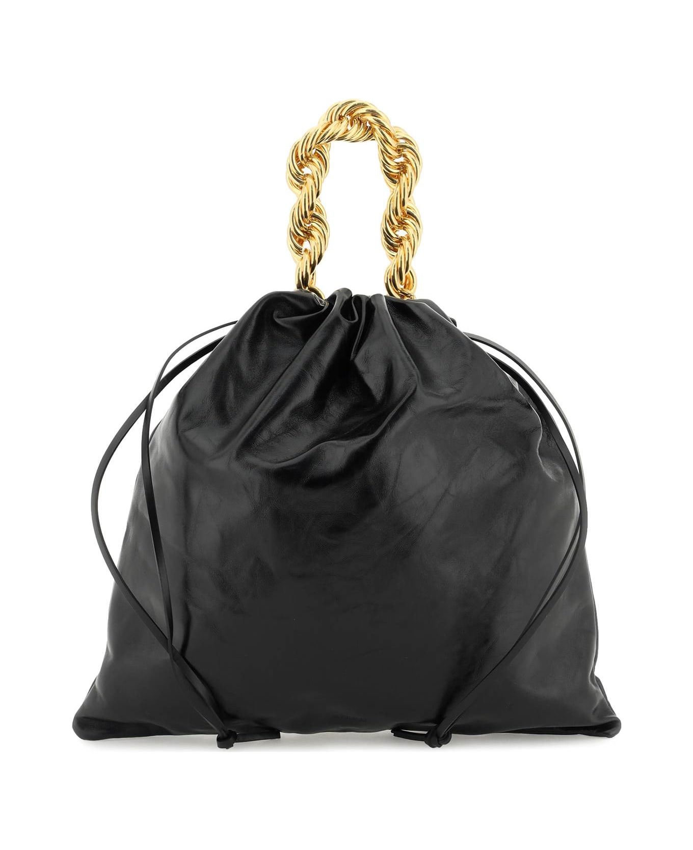 Jil Sander handbag crafted in leather and featuring a woven, gold-tone metal handle. Drawstring closure, leather interior with three open pockets and additional detachable leather handle. Composition: 100% calf leather