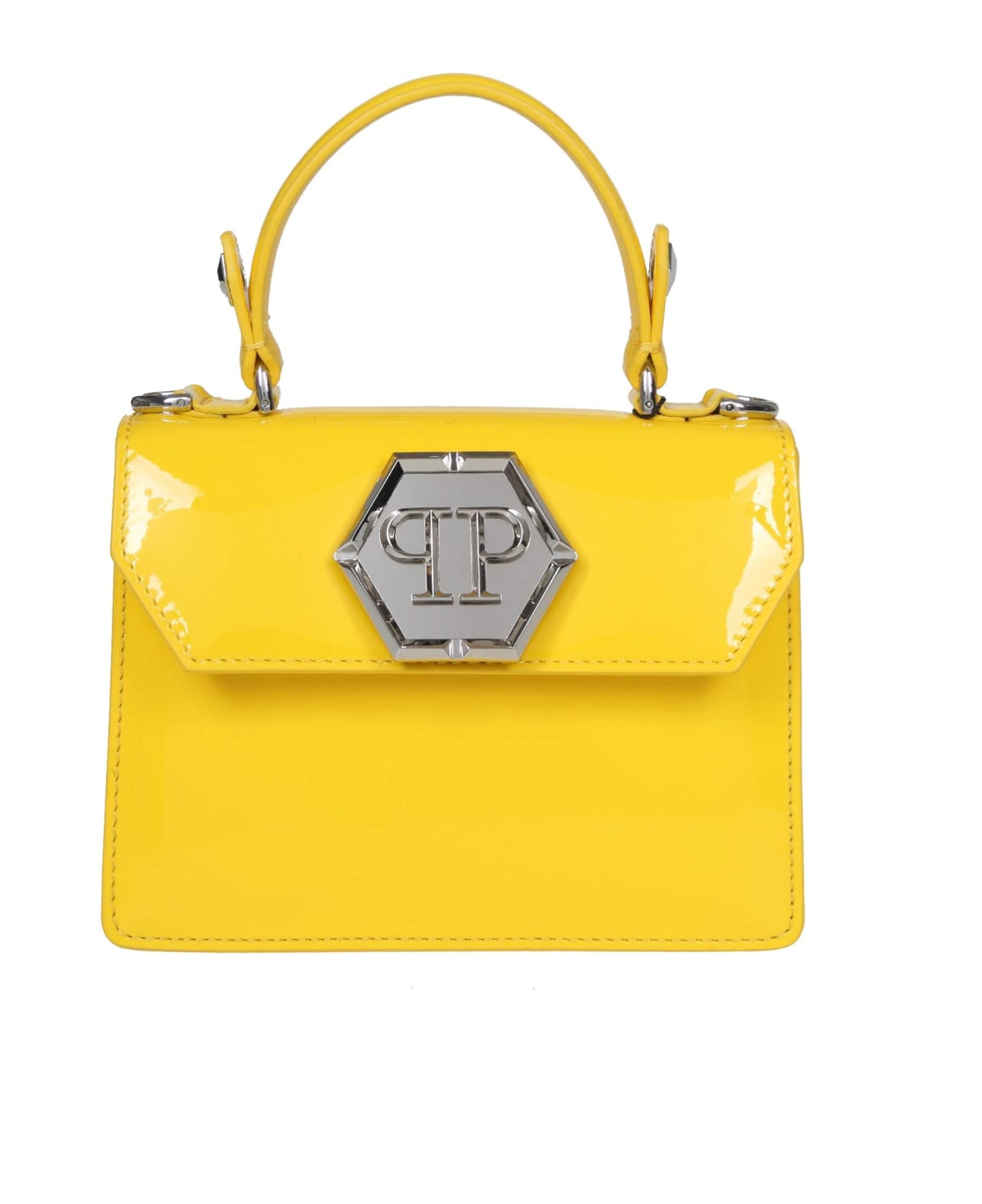 Patent leather handbag yellow colour leather handle flap closure adjustable and removable patent leather shoulder strap one small internal slit pocket leather interior buckle with logo composition 100% leather measures: width 17. 5cm height 13. 5cm depth 7cm made in italy