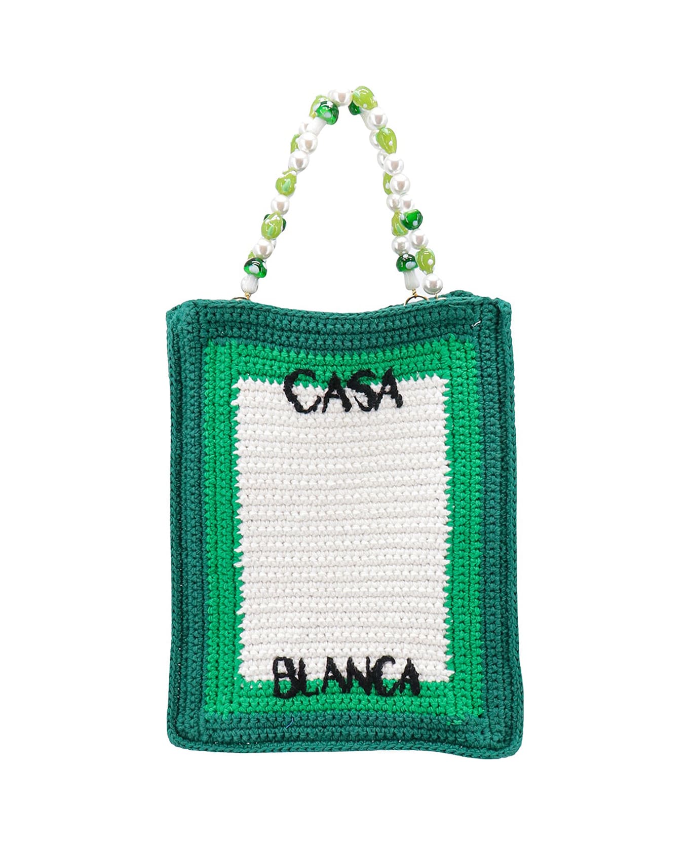 Crochet cotton handbag - Without Closure - Embroidered Logo - Handles With Pearls - Unlined - 100% Cotton