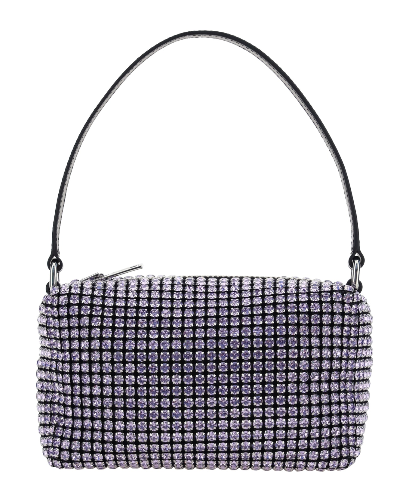 Calfskin heiress medium shoulder bag by alexander wang, crystal mesh design, single leather handle, top zipper closure, logo-embossed press-studded patch on inside, iconic contrasting brand logo on handle.