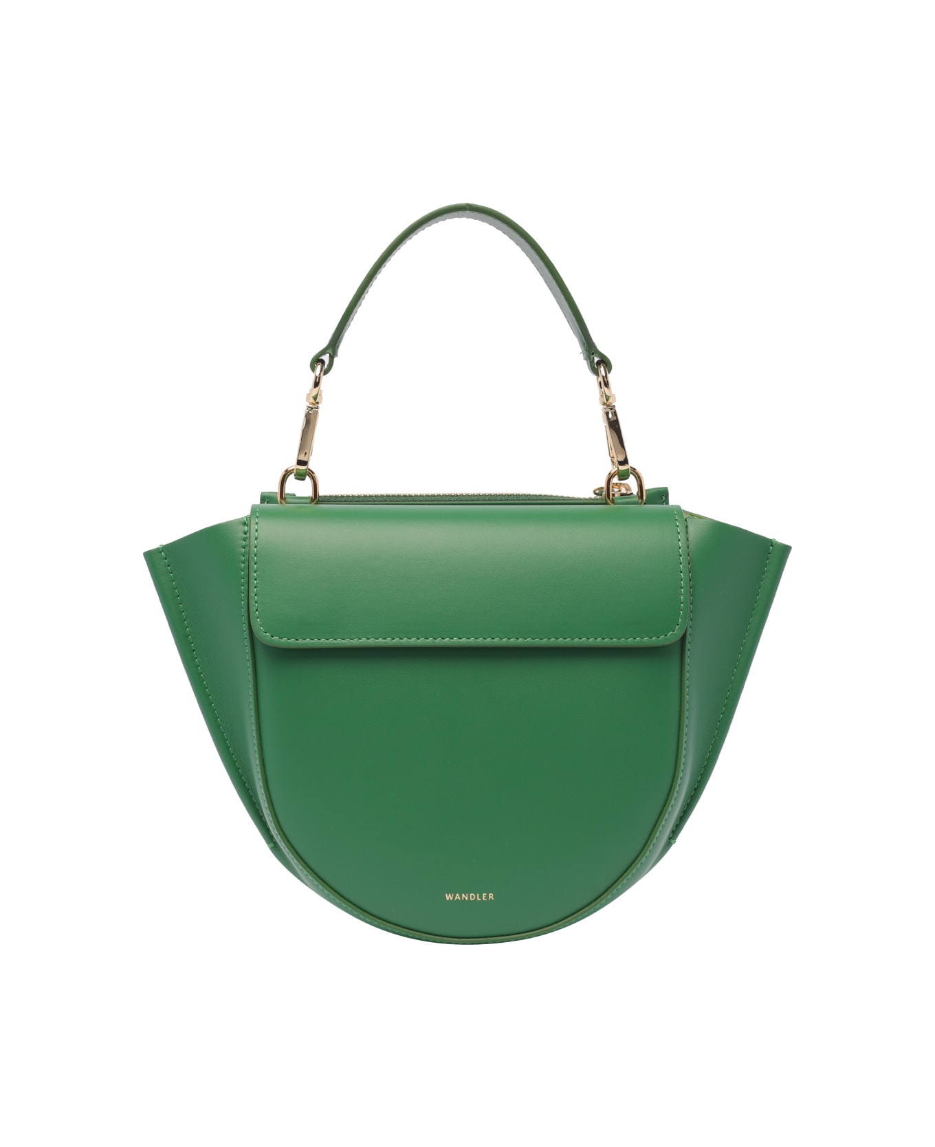 Wandler green Hortnesia mini hand bag, magnetic closure, inner open pocket, external zipped and magnetic closure pocket, removable handle, adaptable and removable strap, frontal mini logo