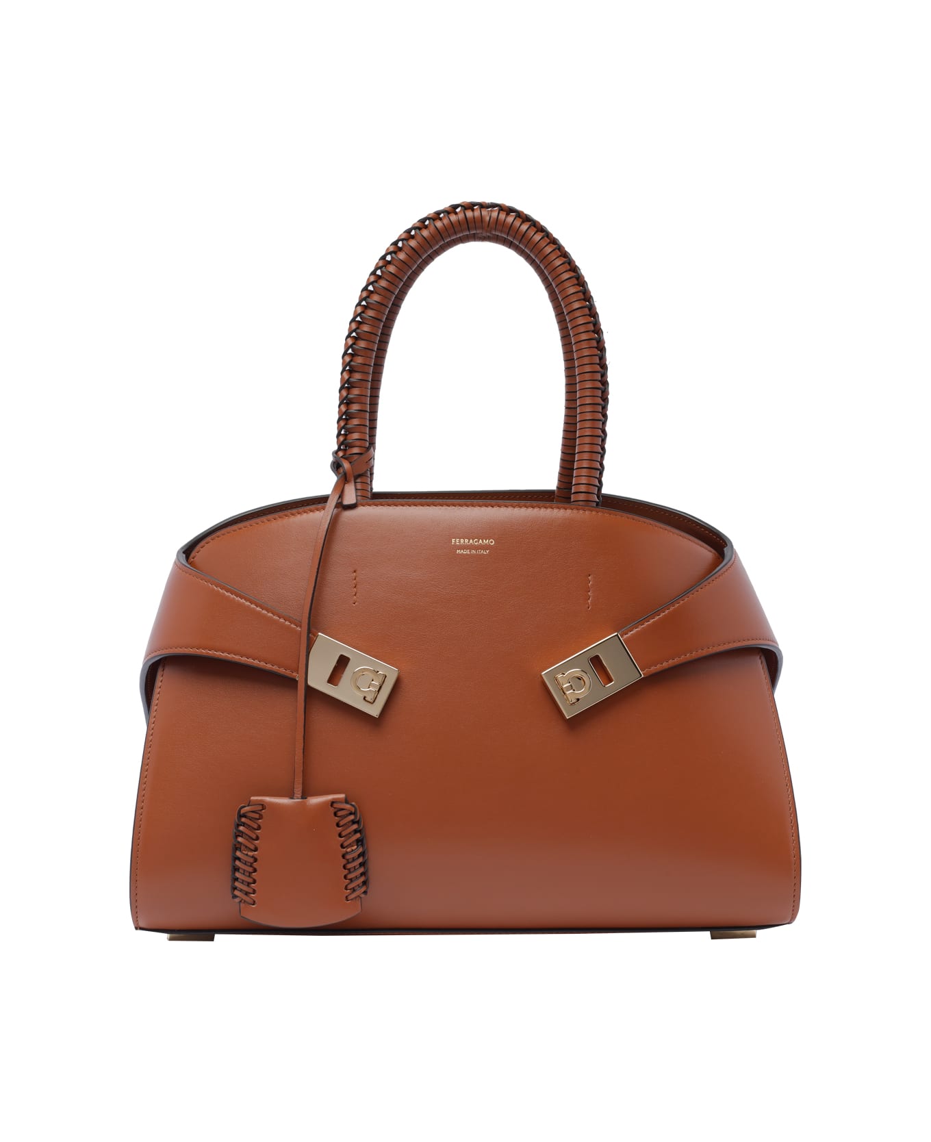 Ferragamo brown Hug handbag, inner zip pocket, adjustable and removable shoulder strap, logo