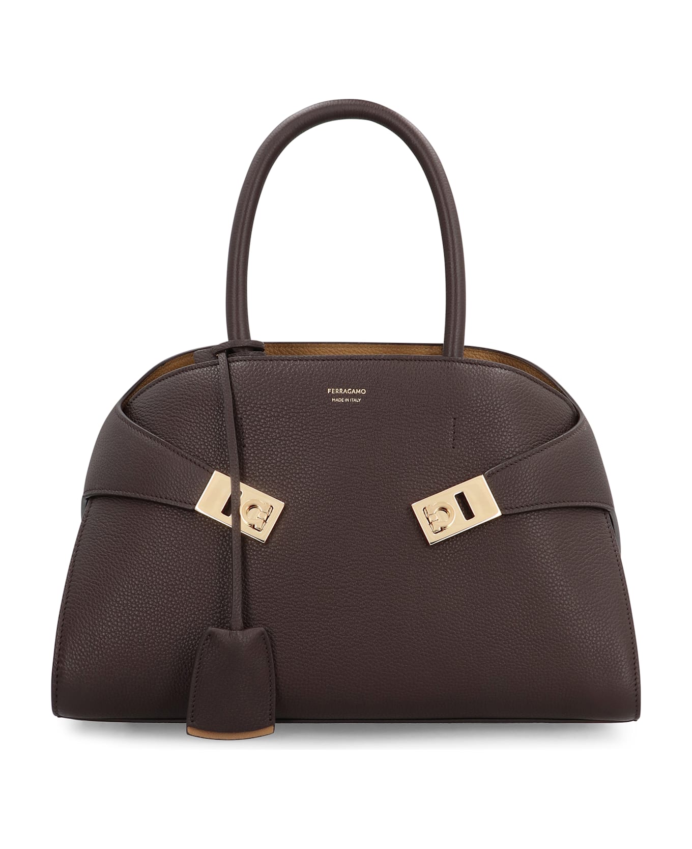 Pebbled calfskin item leather charm with logo snap closure two leather handles internal zippered pocket adjustable and removable leather shoulder strap gold-tone metal hardware contrasting leather lining protective bottom metal studs width: 31,5 cm height: 22 cm depth: 19 cm 100% calf Composition: 100% % Calf
