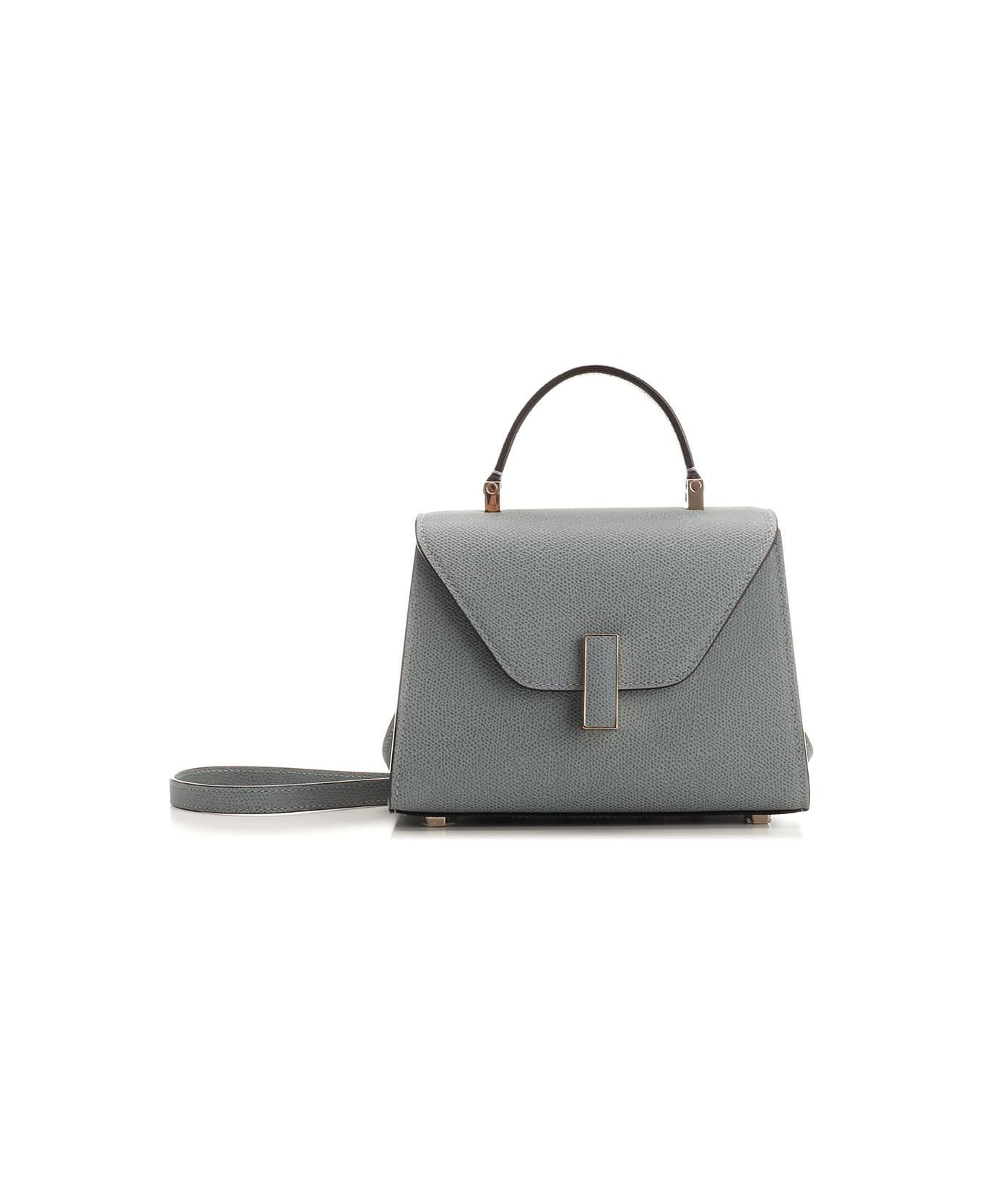 "Iside" micro top handle bag from Valextra in Millepunte leather, with flap, golden metal closure with leather insert, adjustable shoulder strap, protective feet, hand-painted edges, internal flat pocket.