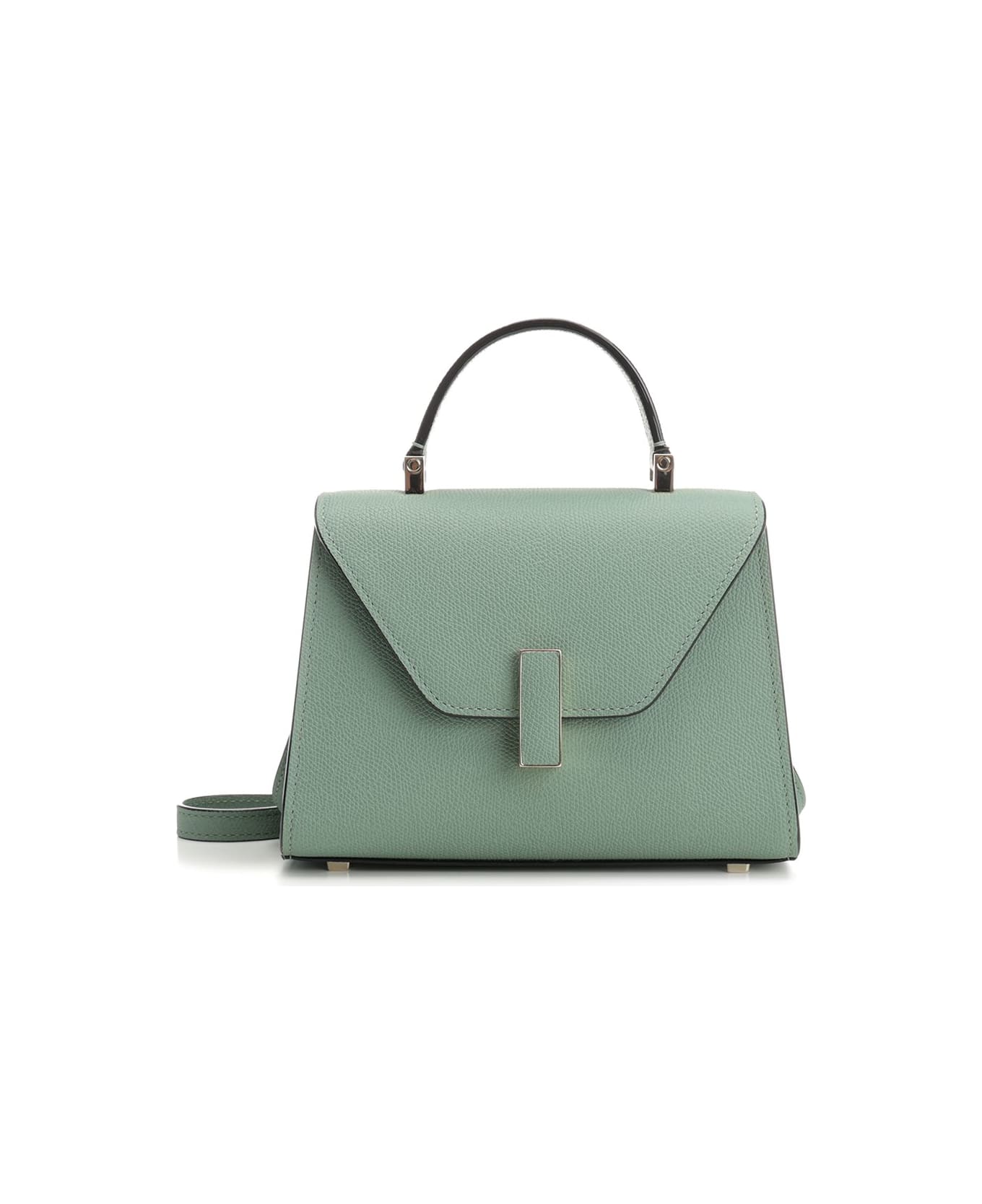 Valextra "Iside" micro leather bag, hand-carried or worn cross-body, thin adjustable shoulder strap allows it to be worn around the waist or across the body, gold-plated metal closure with leather insert, the internal compartment features a small credit card pocket, with the brand's characteristic V-shaped notch, black lacquered edges are hand-painted. The Unique Code, inside the central compartment, is unique to the bag and to the craftsman who made it.