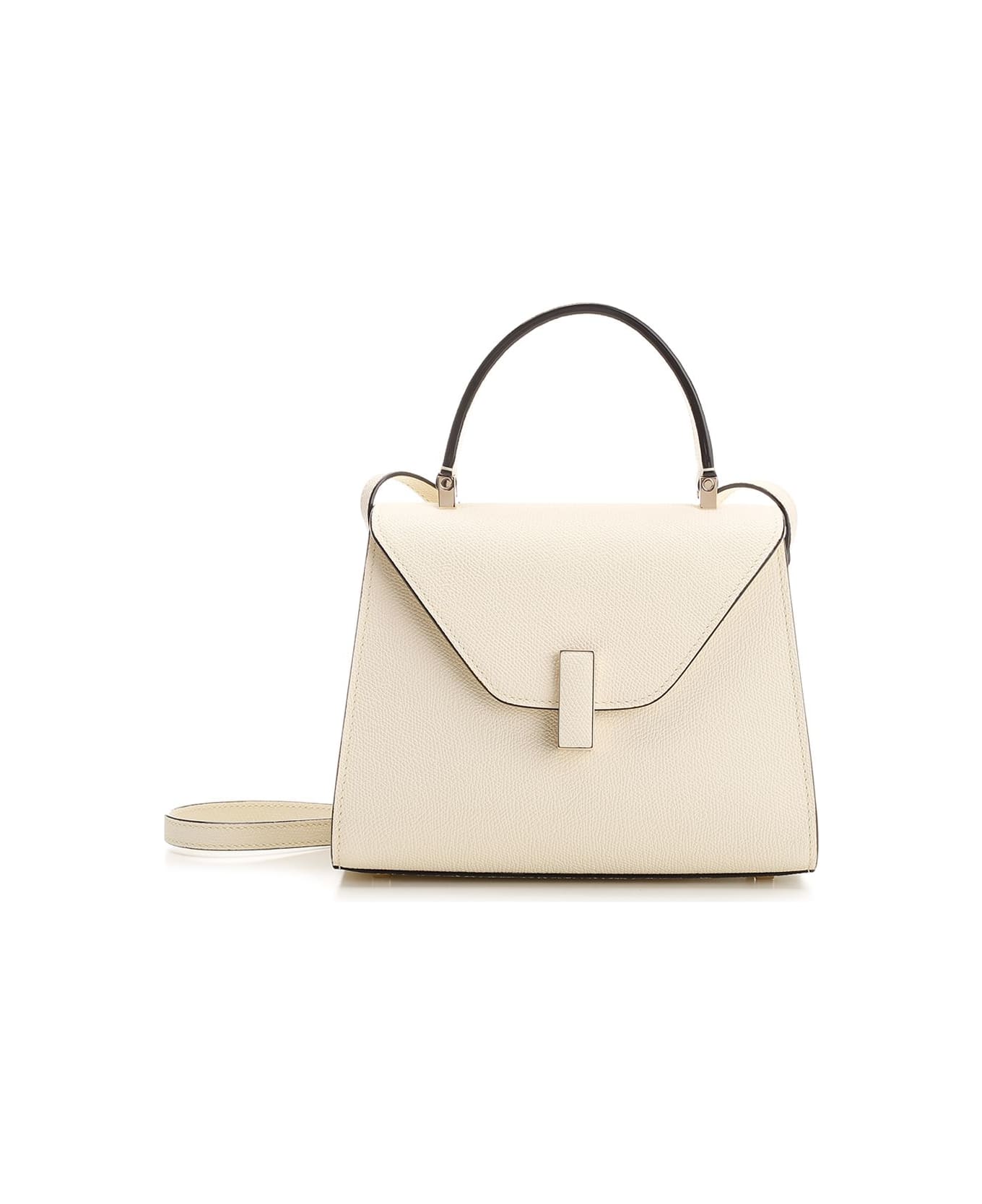 "Iside" Mini handbag in Millepunte calfskin by Valextra, with rectangular gold-tone metal closure and leather insert, removable and adjustable shoulder strap, black lacquered Costa edging