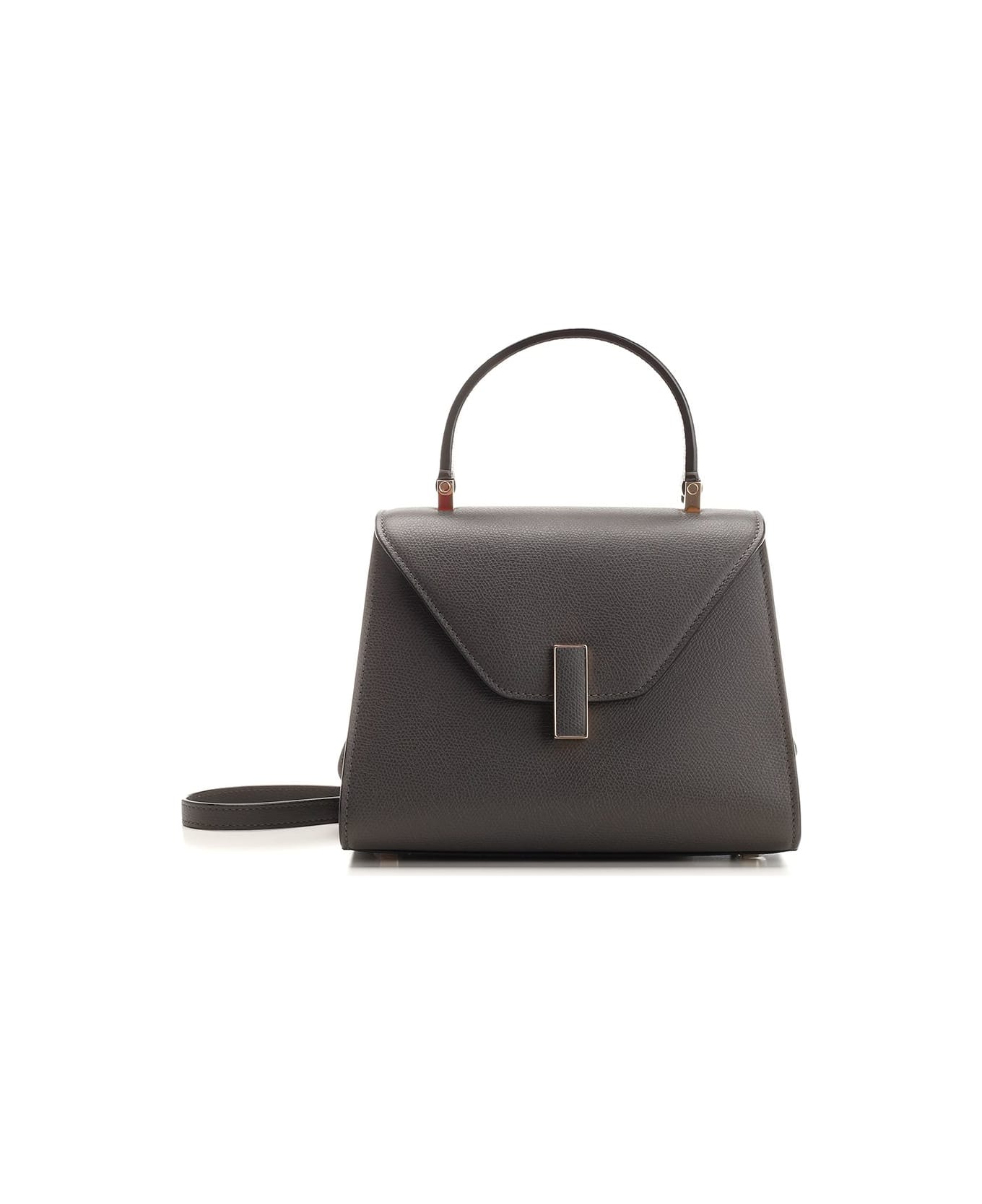"Iside" mini top handle bag from Valextra in vanilla Millepunte leather, with flap, golden metal closure with leather insert, adjustable shoulder strap, protective feet, hand-painted edges, internal flat pocket.