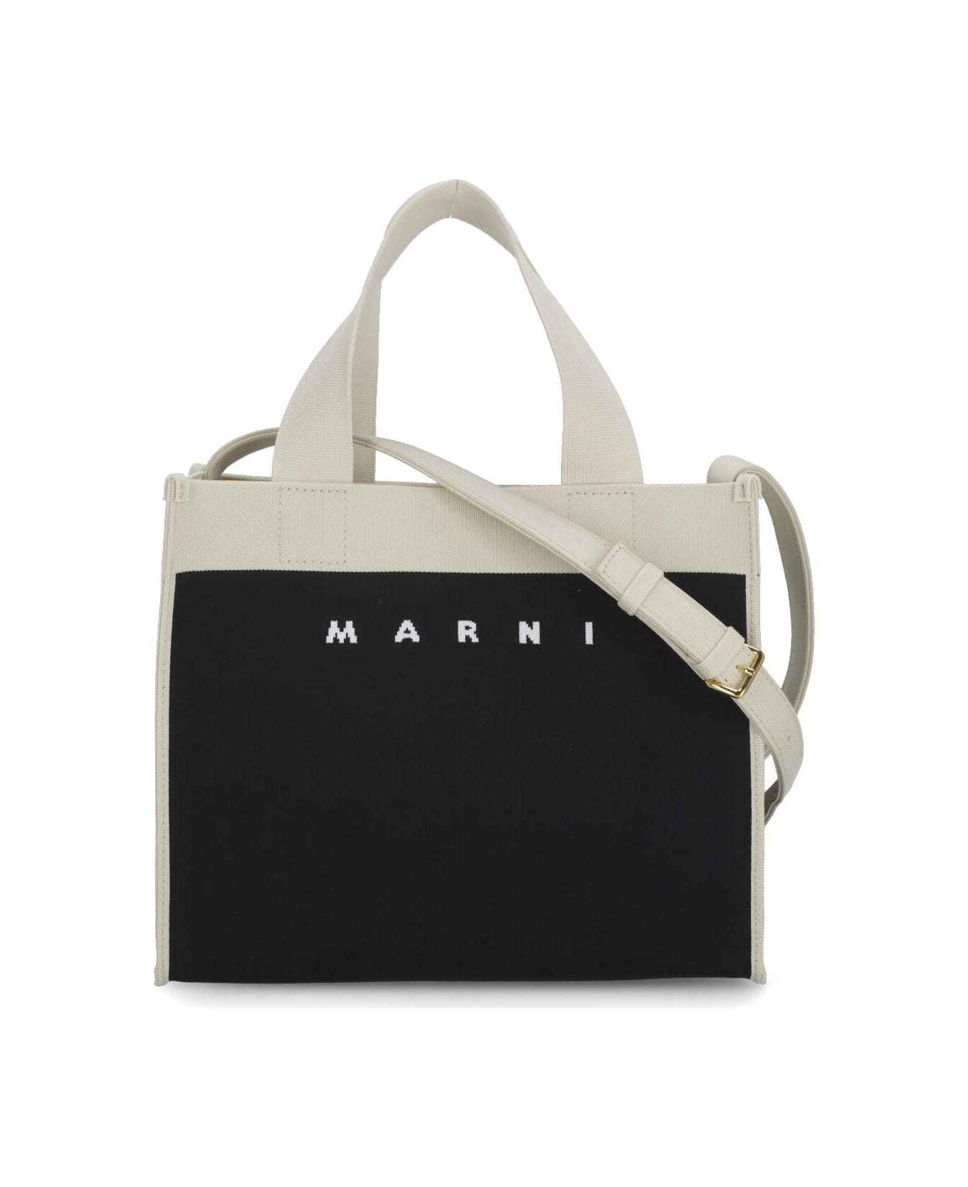 Jacquard Shopping Bag from Marni: - Black Marni jacquard fabric shopping bag for woman - Two handles - Fixed adjustable shoulder strap - Front-rear contrasting color Marni logo - One main compartment - One internal slit pocket with Marni printed logo