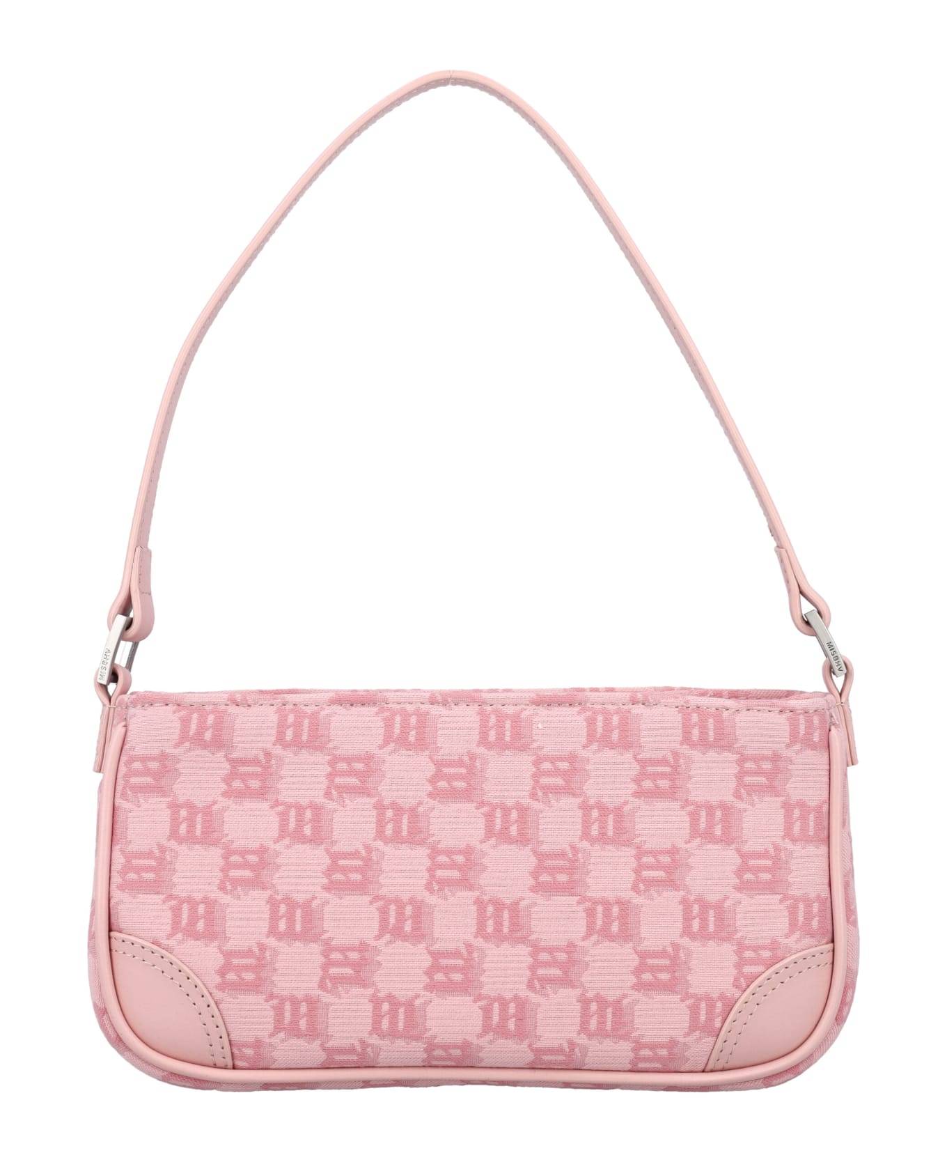 Jaquard Monogram 90's Mini Bag By Misbhv. Featuring: Single Leather Handle Monogram Jacquard Patterned Fabric Leather Details Top Zipped Closure Branded Lining Main Compartment Inner Flat Pocket Height: 12cm Width: 22,5cm Depth: 5cm