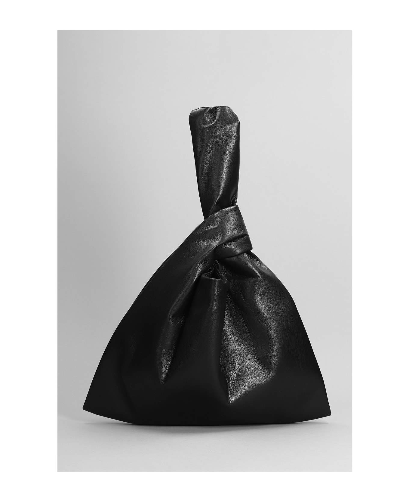 Jen Clutch in black synthetic leather, Height 220 mm, Width 310 mm, handle, knot detail, 100% artificial leather, Made in Hungary