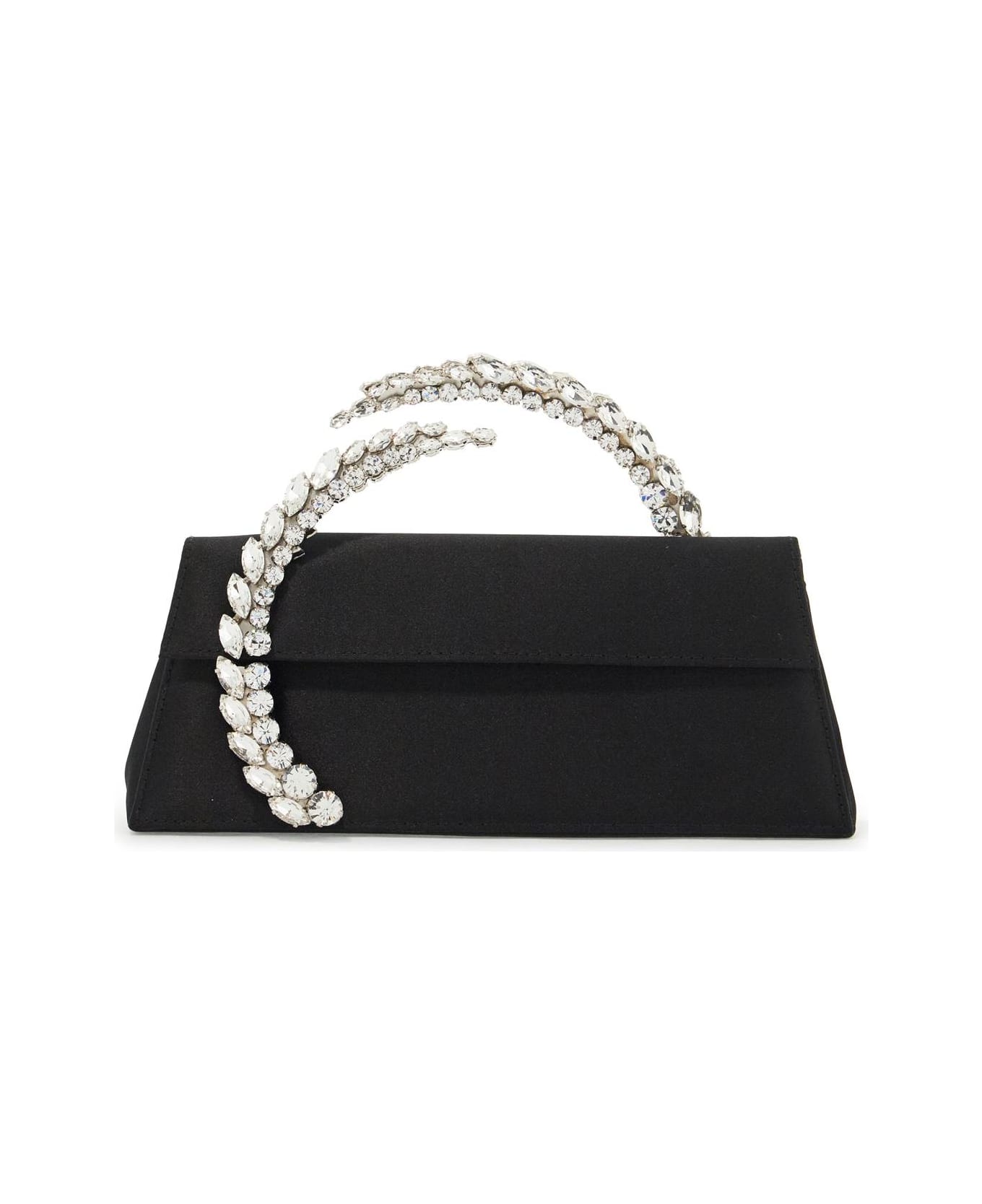 The Clutch Karma by L'ALINGI is made of a blend of silk satin. Its structured design is embellished with circular silver metal handles, starting from the base of the bag and adorned with degradé crystals. It features a magnetic closure and a lined interior with a credit card slot.