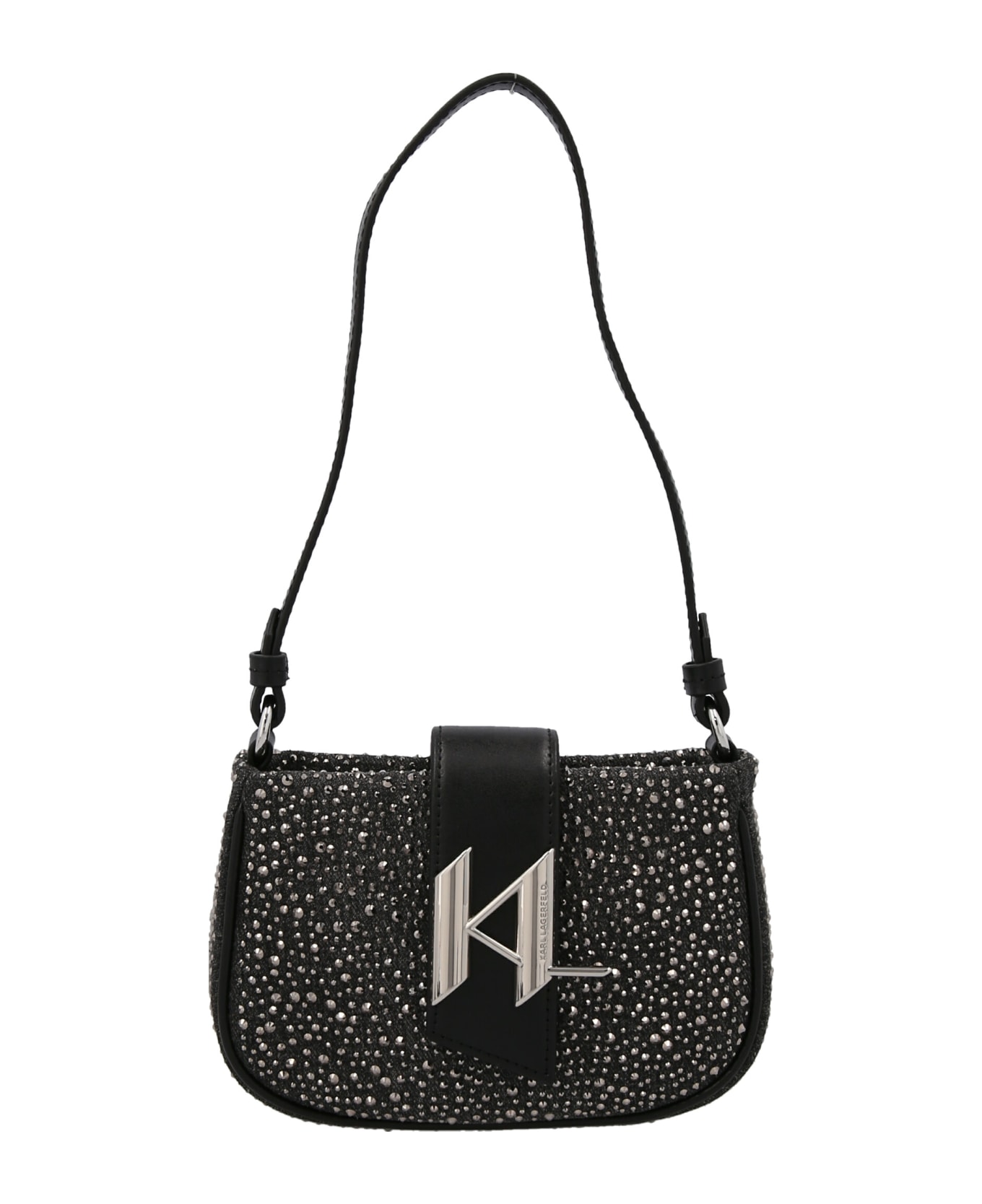 K/Evening' denim shoulder bag with all-over sequin appliqués, leather details, shoulder strap, leather belt closure and a metal logo.