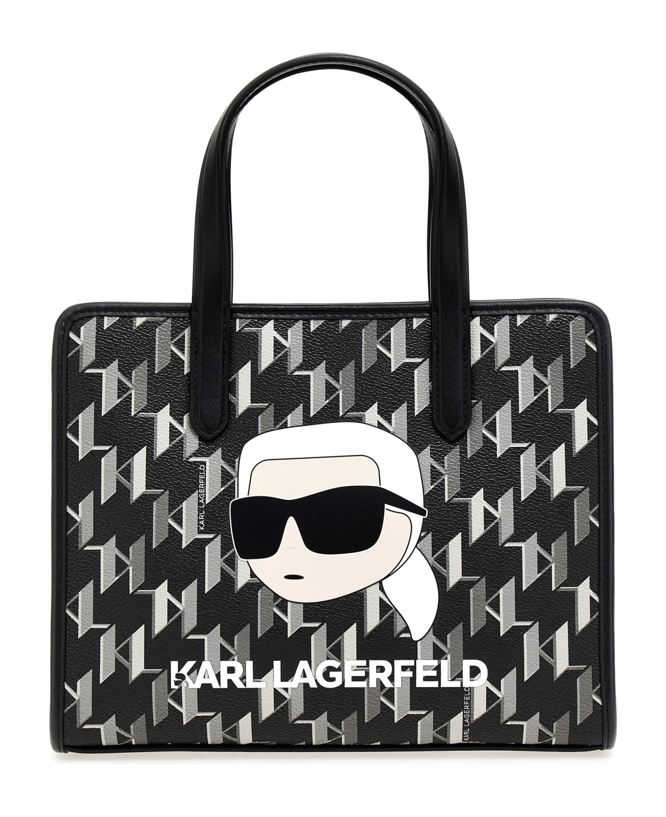 K/Ikonik Monogram shopper bag in lightweight canvas lined with all-over KARL monogram pattern and Ikonik Karl graphics, double handles, fitted with removable long shoulder strap.