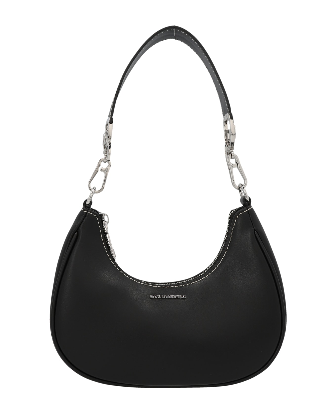 'K/Ikonik' leather shoulder bag with top zip closure, removable handle, Ikonik Karl details and logo detail.