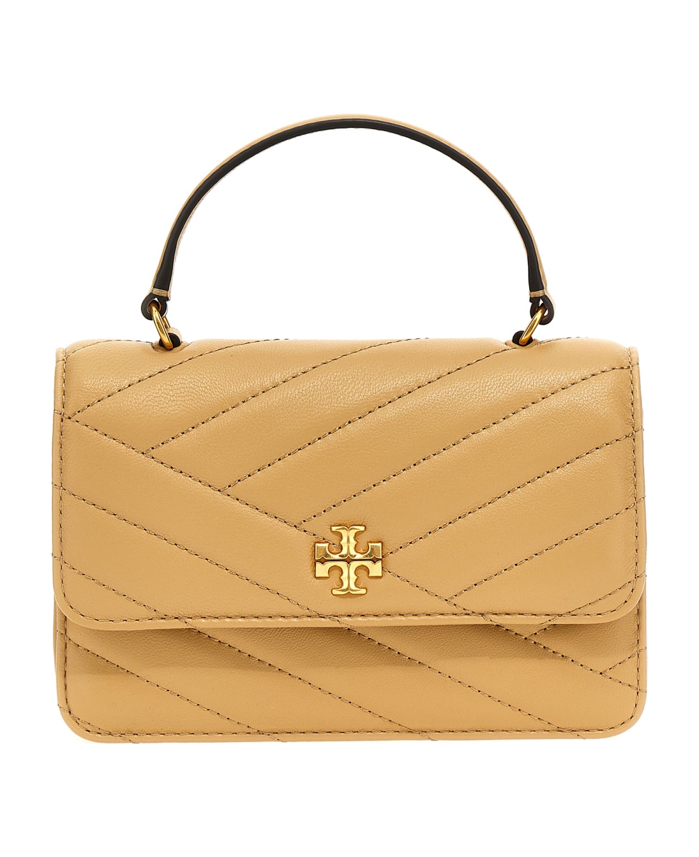 'Kira Chevron' quilted leather handbag, magnetic closure, top fixed handle, and removable chain shoulder strap.