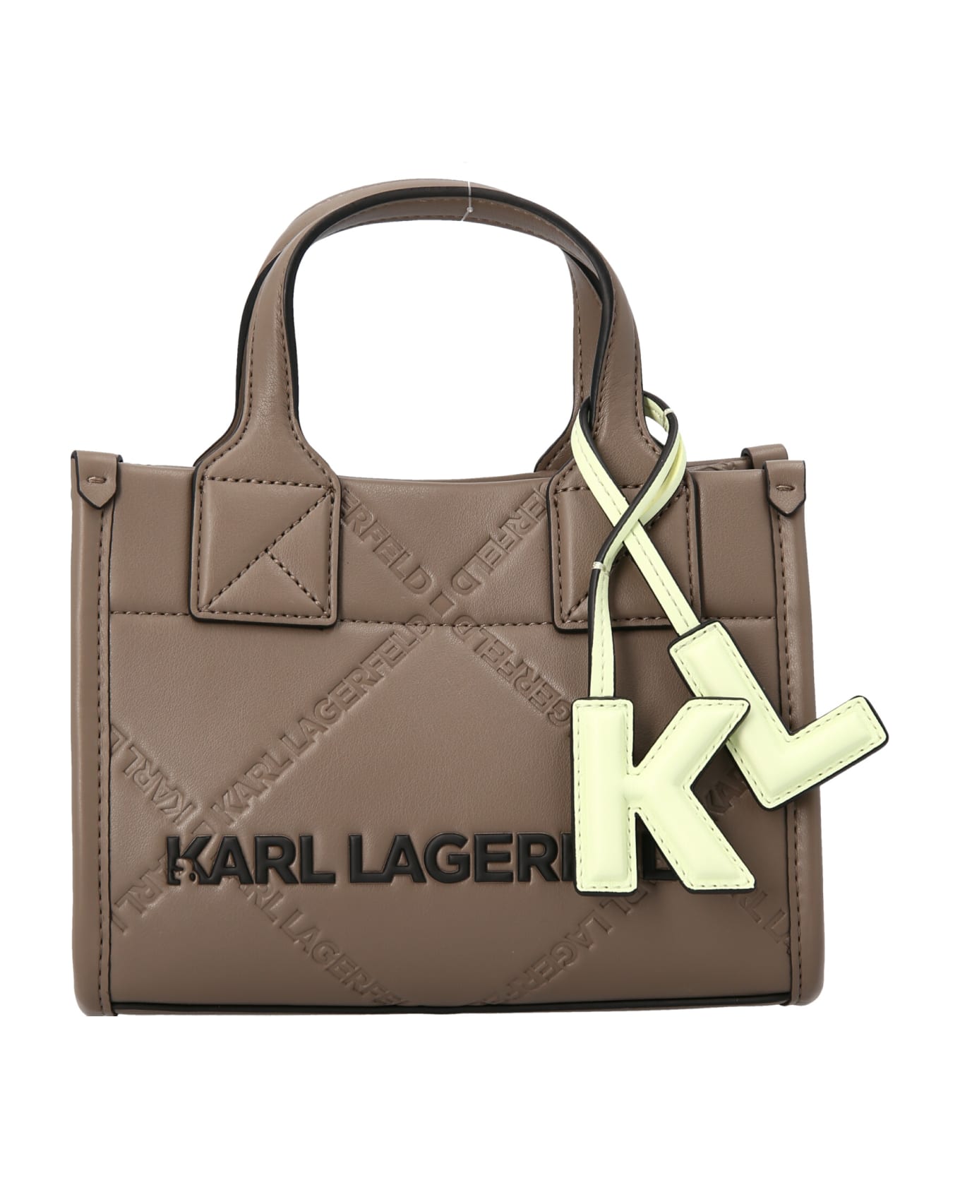 K/Nylon' fabric handbag with all-over embossed logo, magnetic flap closure, double handle, removable shoulder strap, inner zip pocket and a removable logo charm.