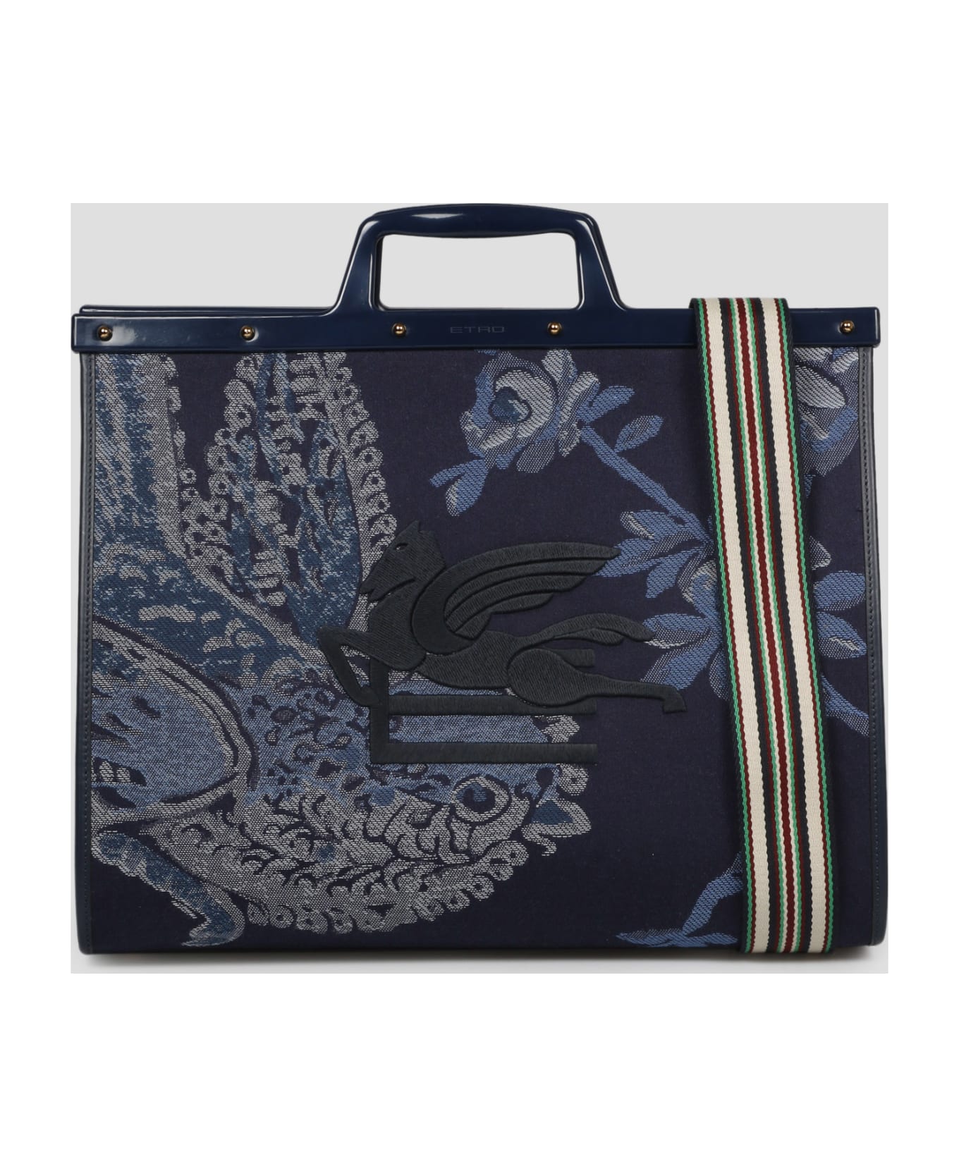 Etro Large Love Trotter shopping bag in jacquard fabric, decorated by 3D-effect embroidered ETRO Pegaso logo. - SS23