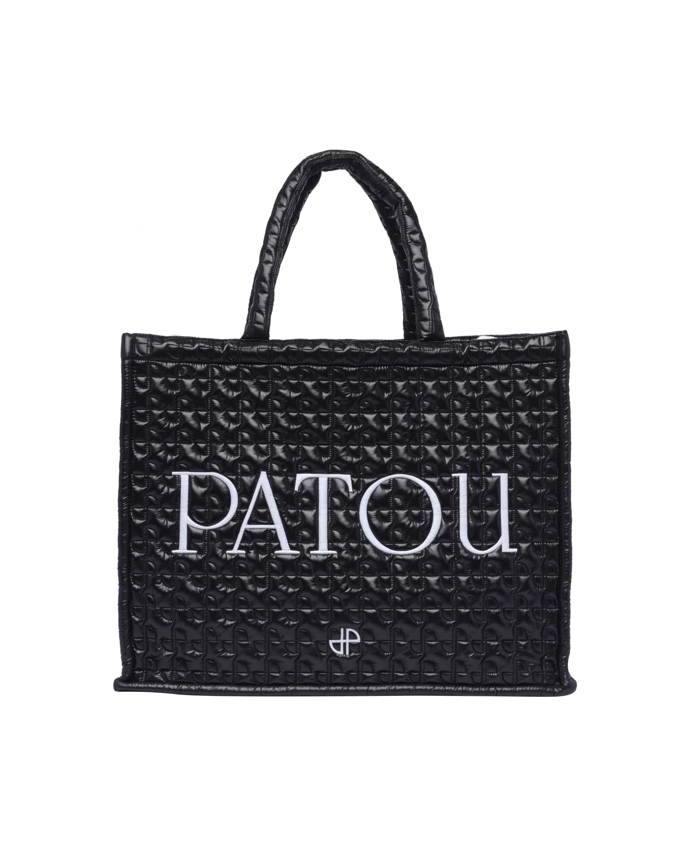 Patou black tote bag, logo on the front, double handles, removable shoulder strap