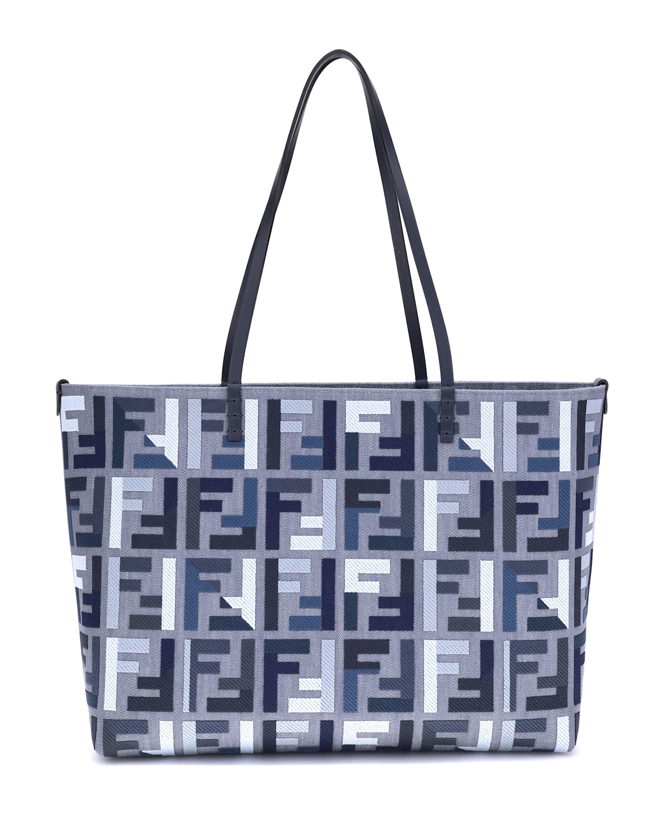 The fendi large roll tote bag is an elegant reinterpretation of the classic shopper, perfect for a sophisticated and contemporary look. crafted from fine canvas, it is embellished with the iconic ff embroidery that decorates the entire surface, giving it a strong distinctive character. the two flat leather handles ensure comfortable and resistant portability, while the lined interior features a practical zip pocket, ideal for organizing essentials in style.