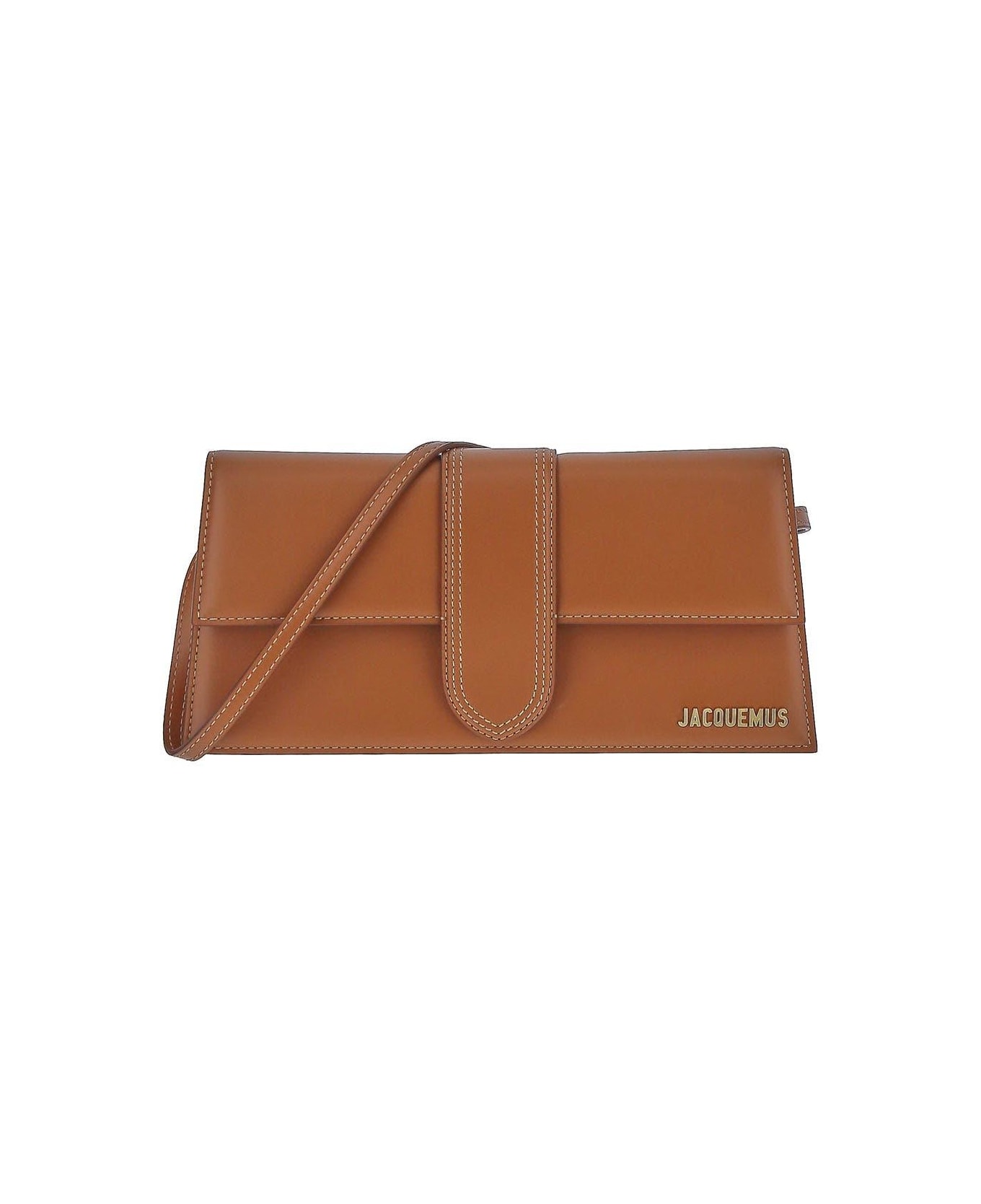Jacquemus le bambino bag in light brown leather with topstitched details. The item is featured by long removable strap, patch pocket on the back and gold metal logo. Composition: 100% LEATHER